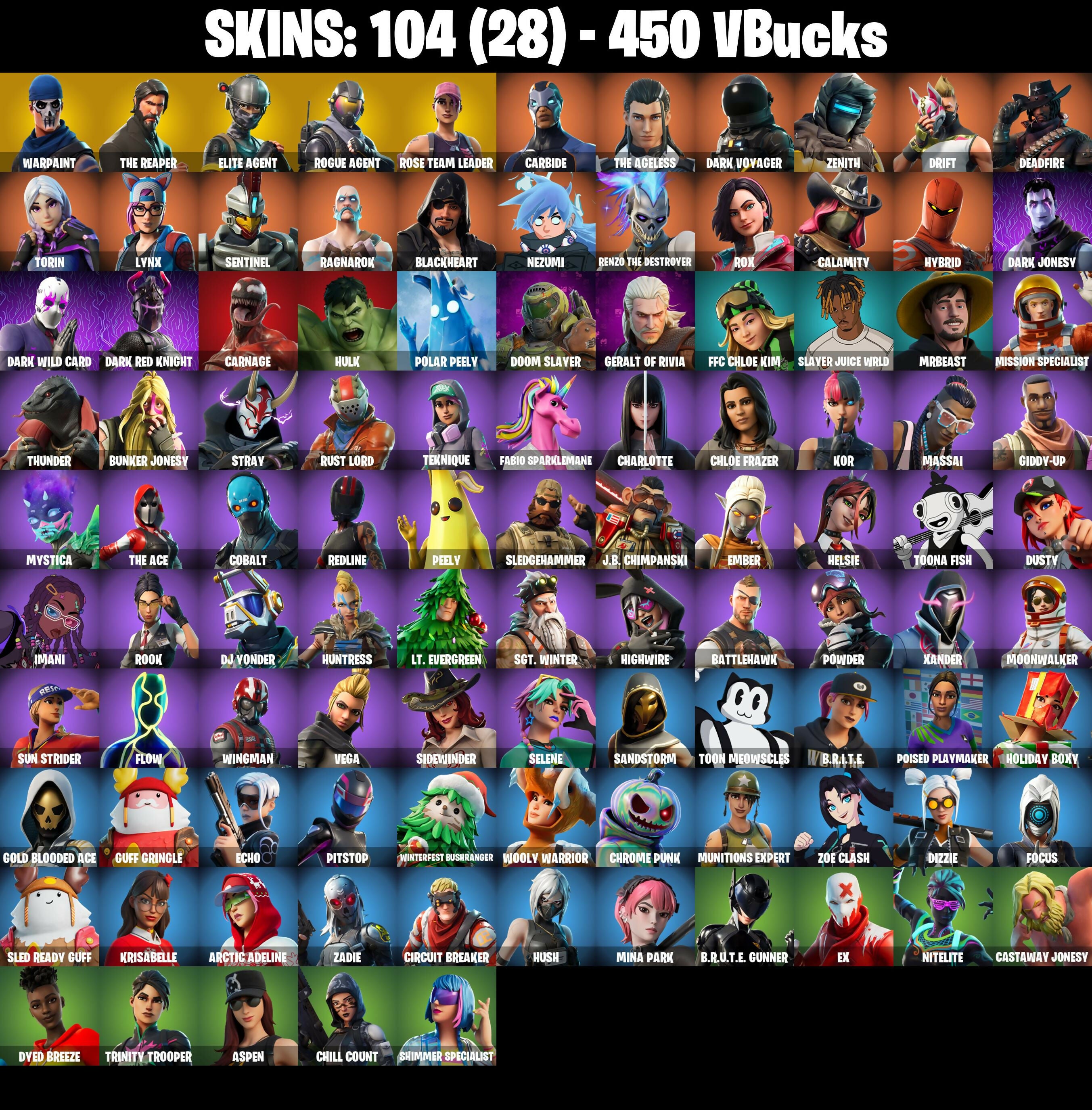 PC/PSN/XBOX |104 skins | OG STW | The Reaper | Elite Agent | Take The L | Orange Justice | Dark Voyager | Rogue Agent | Drift | Carbide | #B897