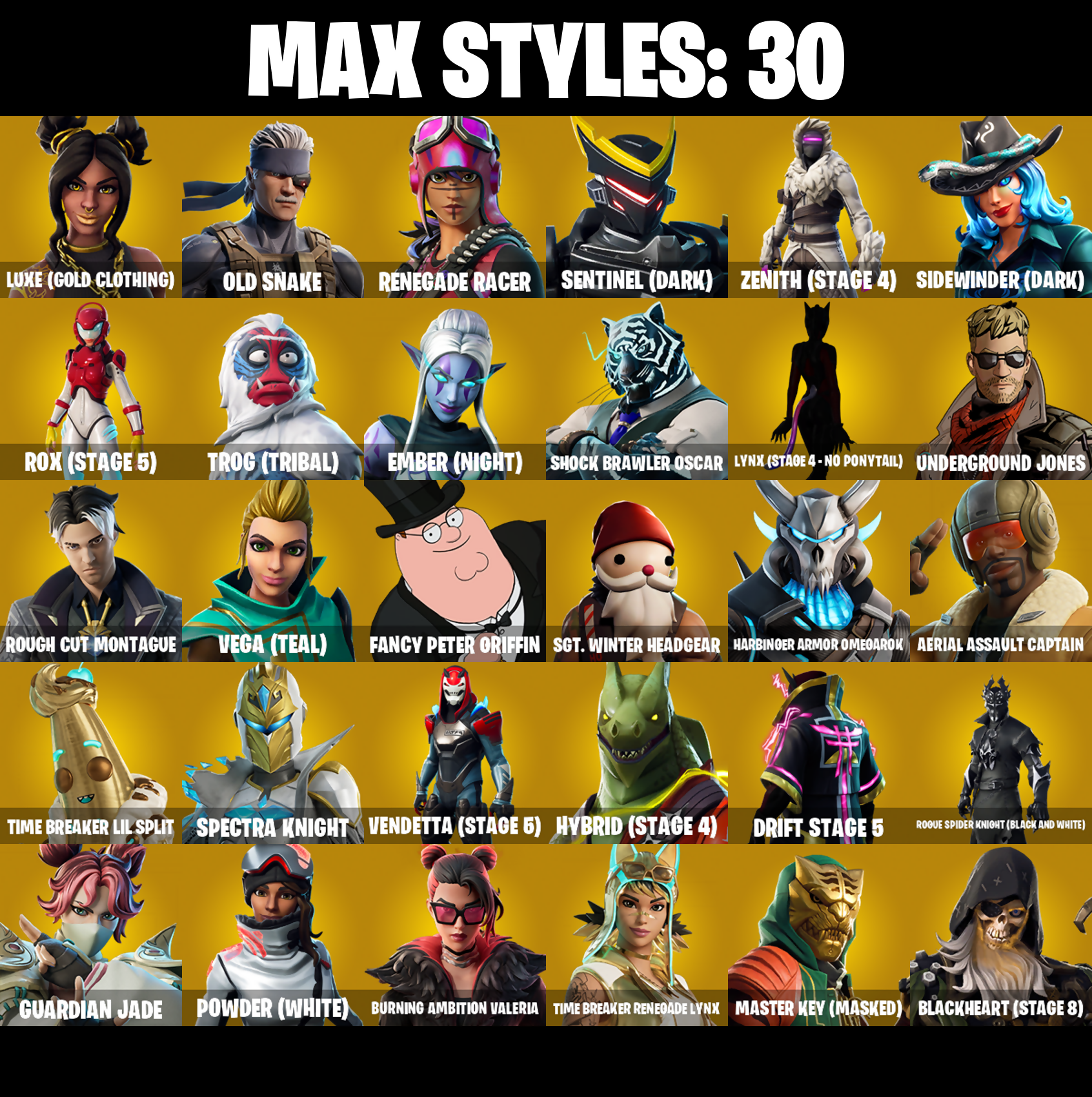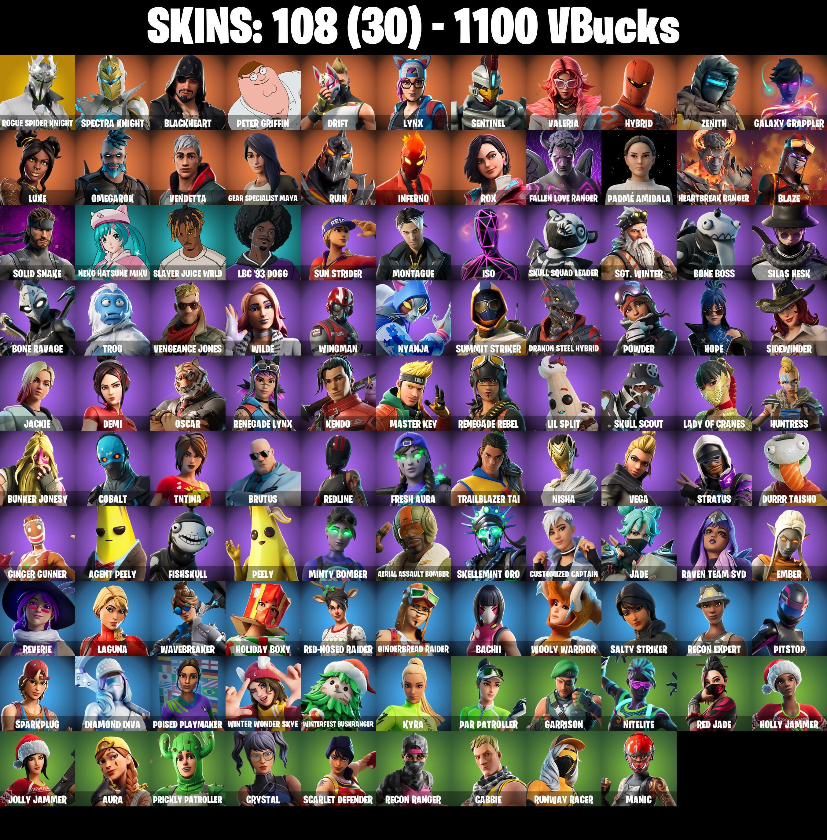 PC/PSN/XBOX |108 skins | Rogue Spider Knight | Candy Axe | Reaper | Drift | Rogue Spider Shield | Luxe | Peely | Vendetta | Lynx | #B893