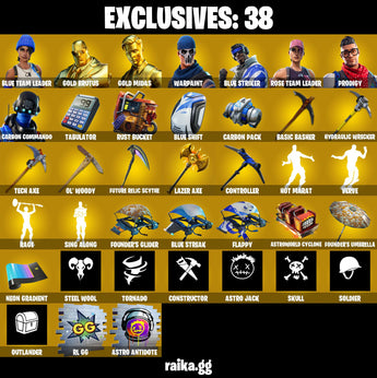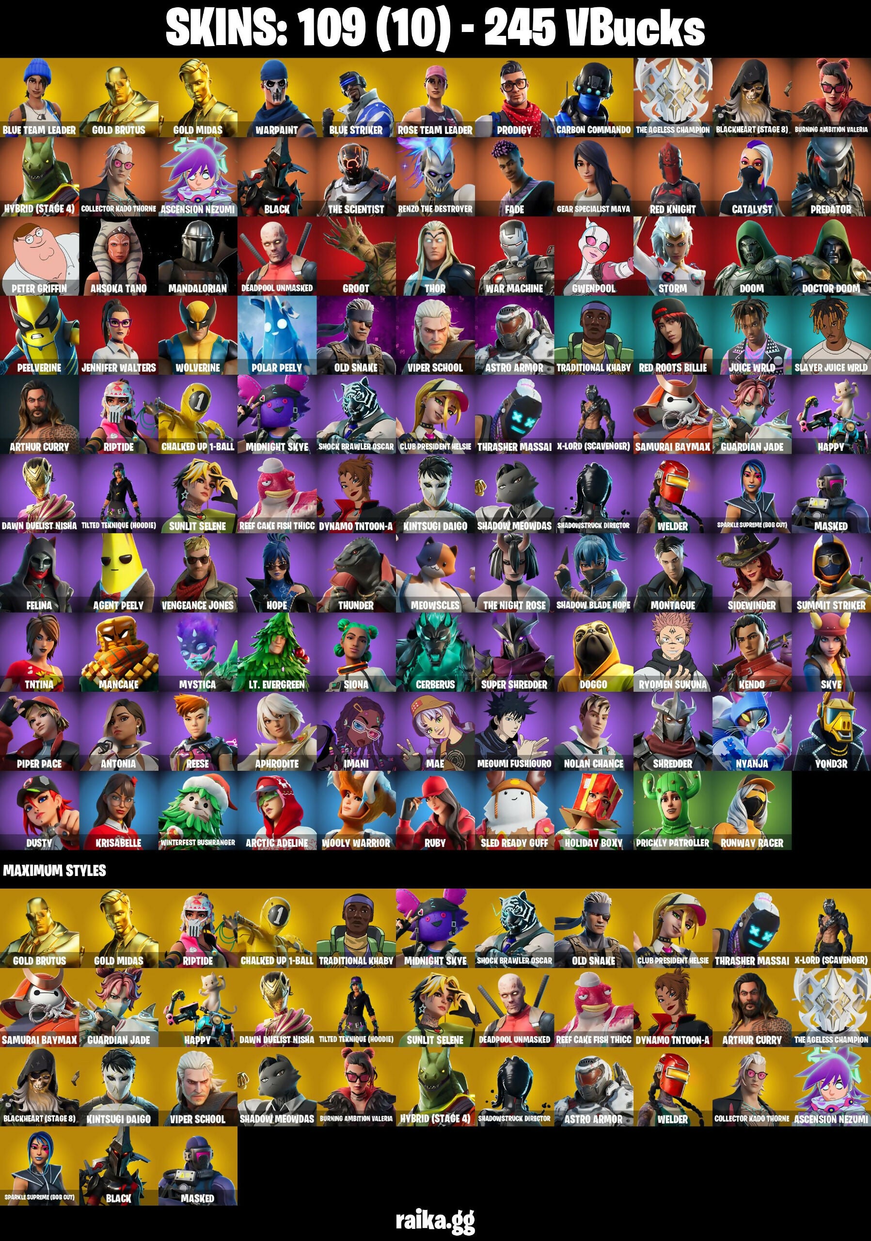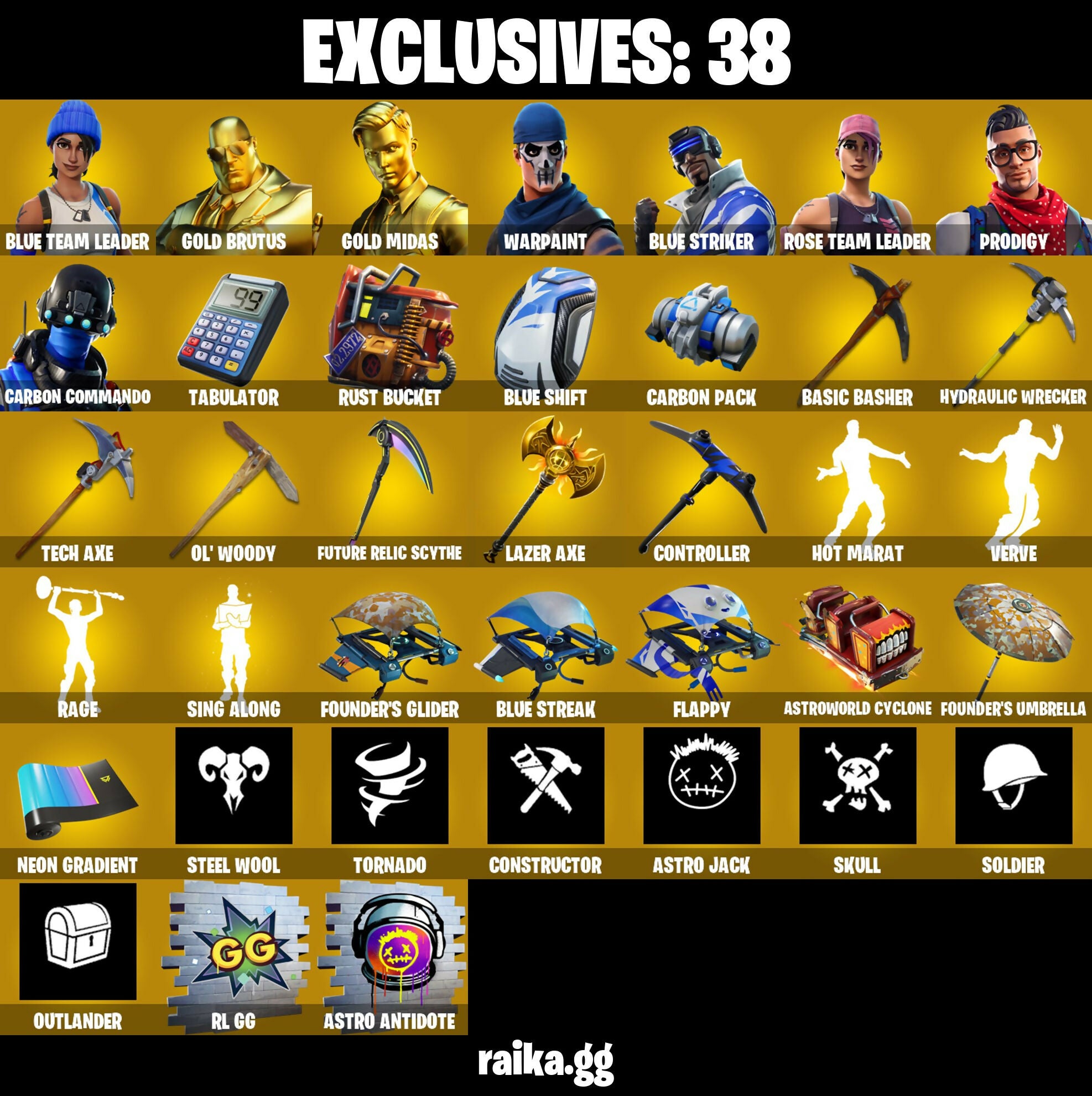 [PC/PSN/XBOX] 109 skins | OG STW | Blue Team Leader | Gold Brutus | Gold Midas | Blue Striker | Prodigy | Carbon Commando | The Ageless Champion | 245 VB