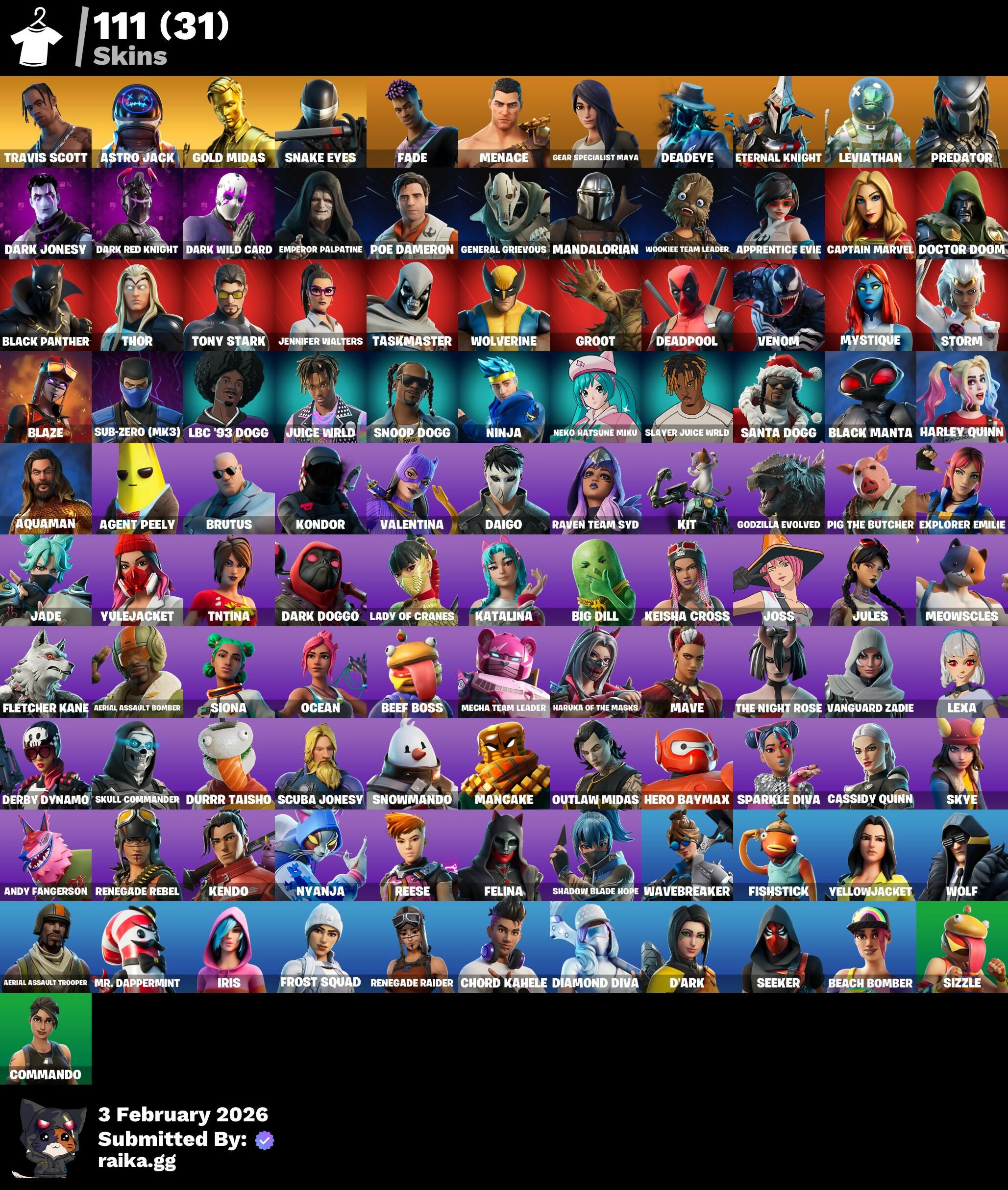 [PC/PSN/XBOX] 111 skins | Renegade Raider | Aerial Assault Trooper | Travis Scott | Astro Jack | Gold Midas | Snake Eyes | Fade | Menace | 350 VB
