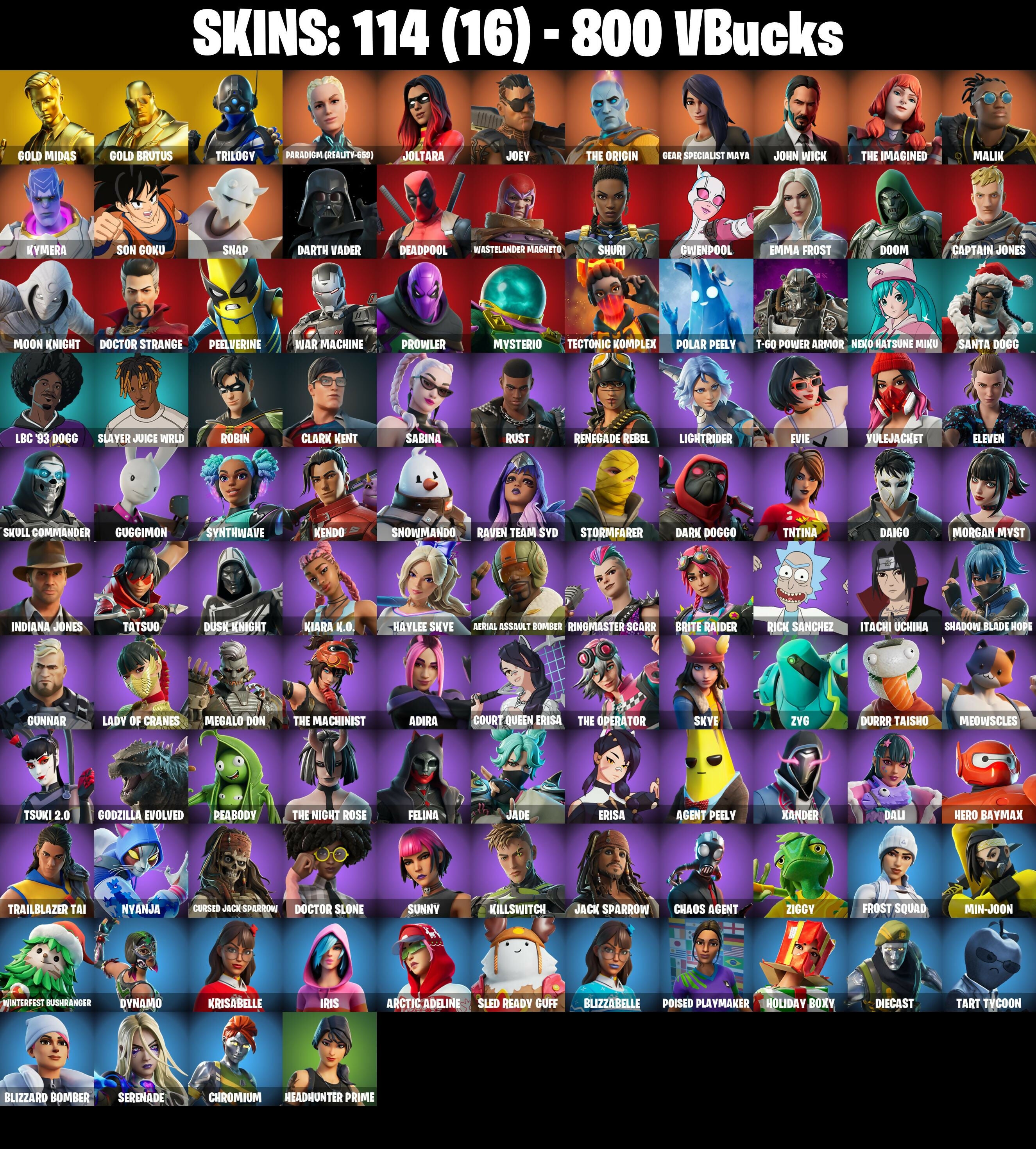 PC/PSN/XBOX |114 skins | Deadpool | Gold Midas | Gold Brutus | Jabba Switchway | Rick Sanchez | Doctor Strange | Darth Vader | Sing Along | #B850