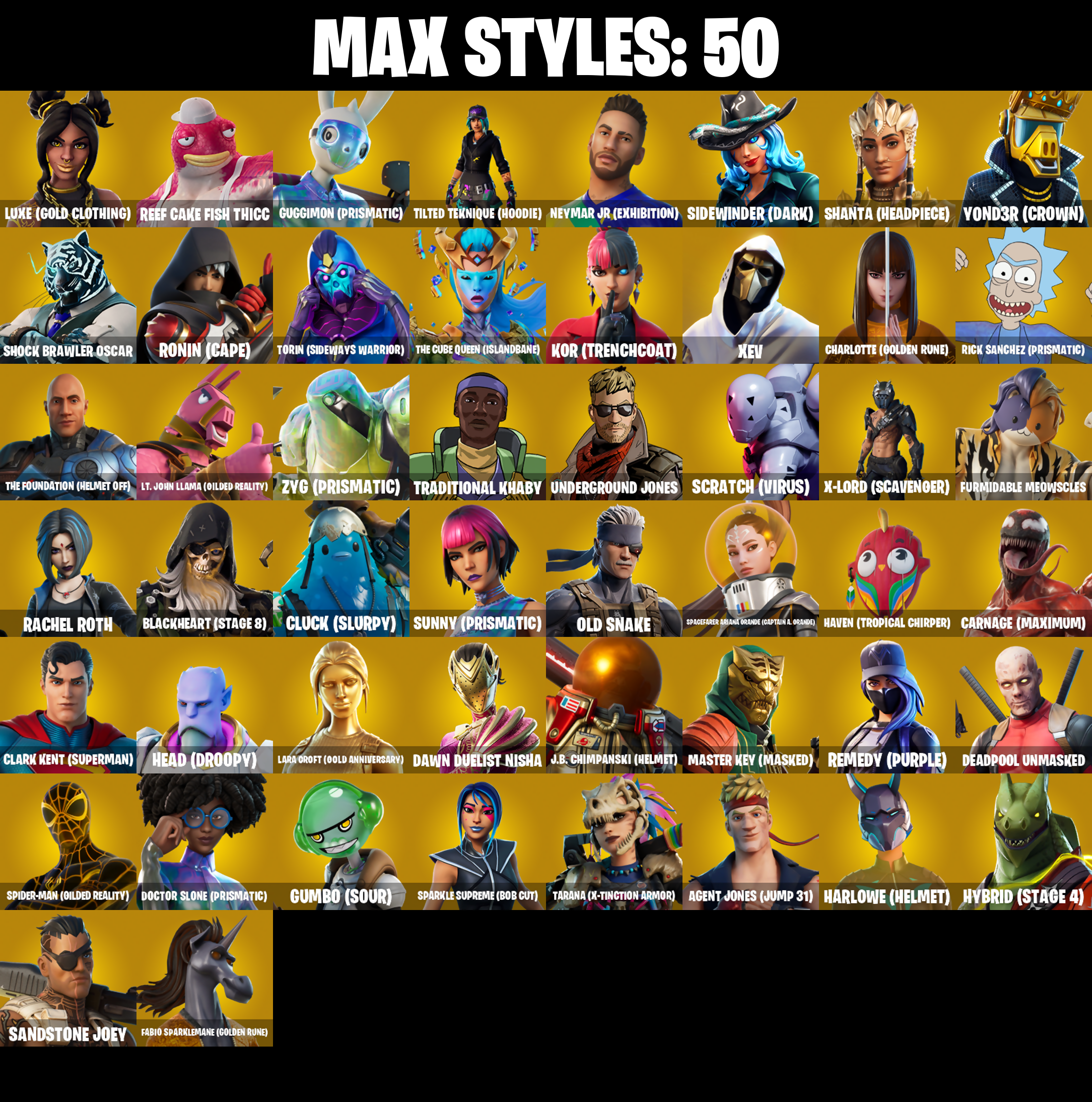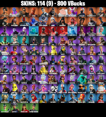 PC/PSN/XBOX |114 skins | Lara Croft | Deadpool | Head Banger | Rage | Luxe | Peely | Fusion | Spider-Man | Midas | Spire Assassin | #B886