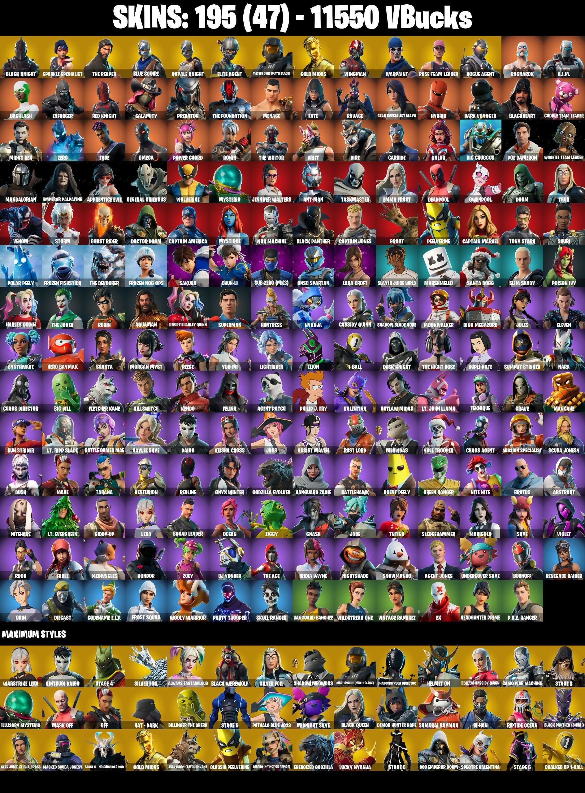 (PC/PSN/XBOX) 11550 VB) 195 skins | Renegade Raider | Black Knight | Sparkle Specialist | The Reaper | Blue Squire | Royale Knight | Elite Agent