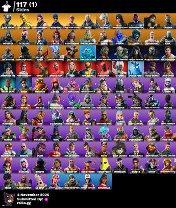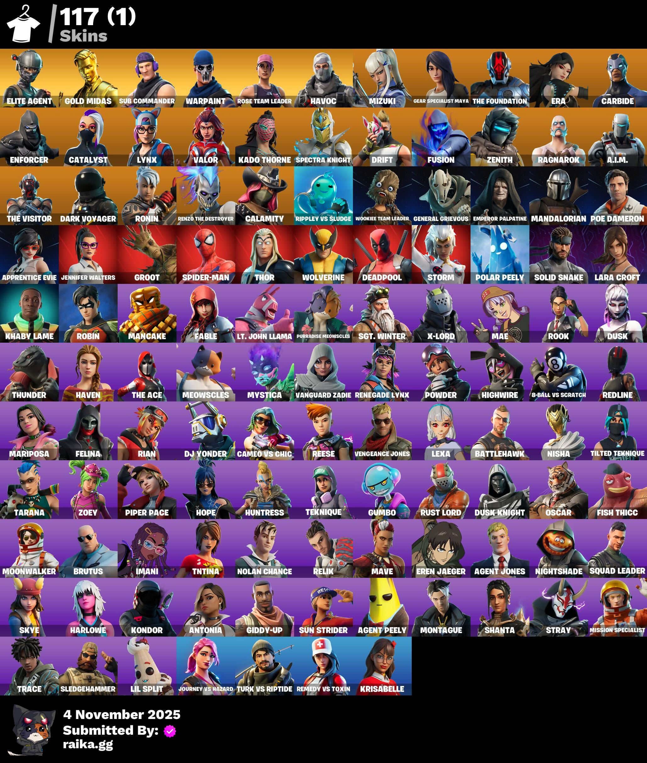[PC/PSN/XBOX] 117 skins | OG STW | Elite Agent | Gold Midas | Sub Commander | Havoc | Mizuki | Gear Specialist Maya | The Foundation | Era | Carbide | Enforcer | 1250 VB