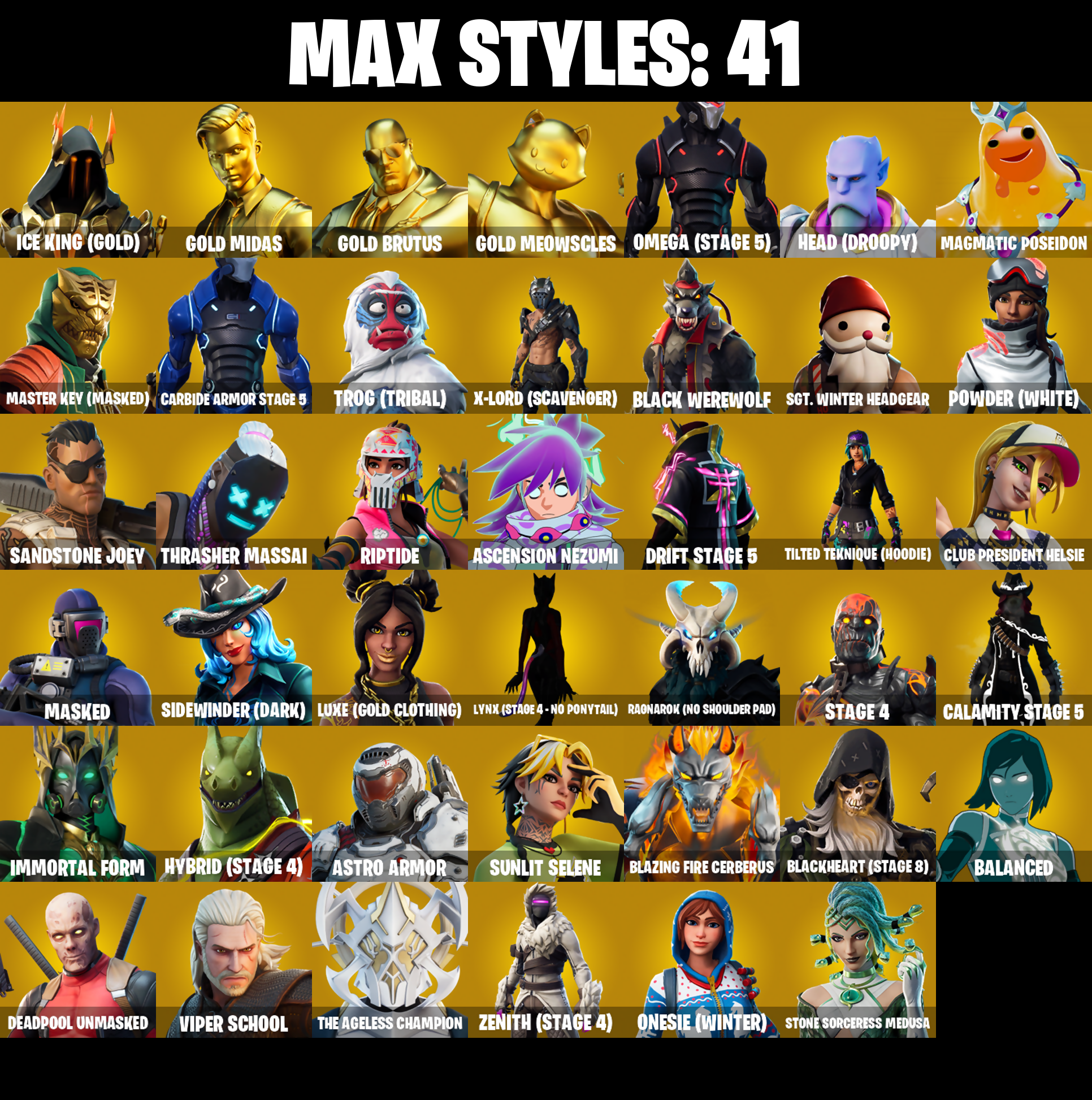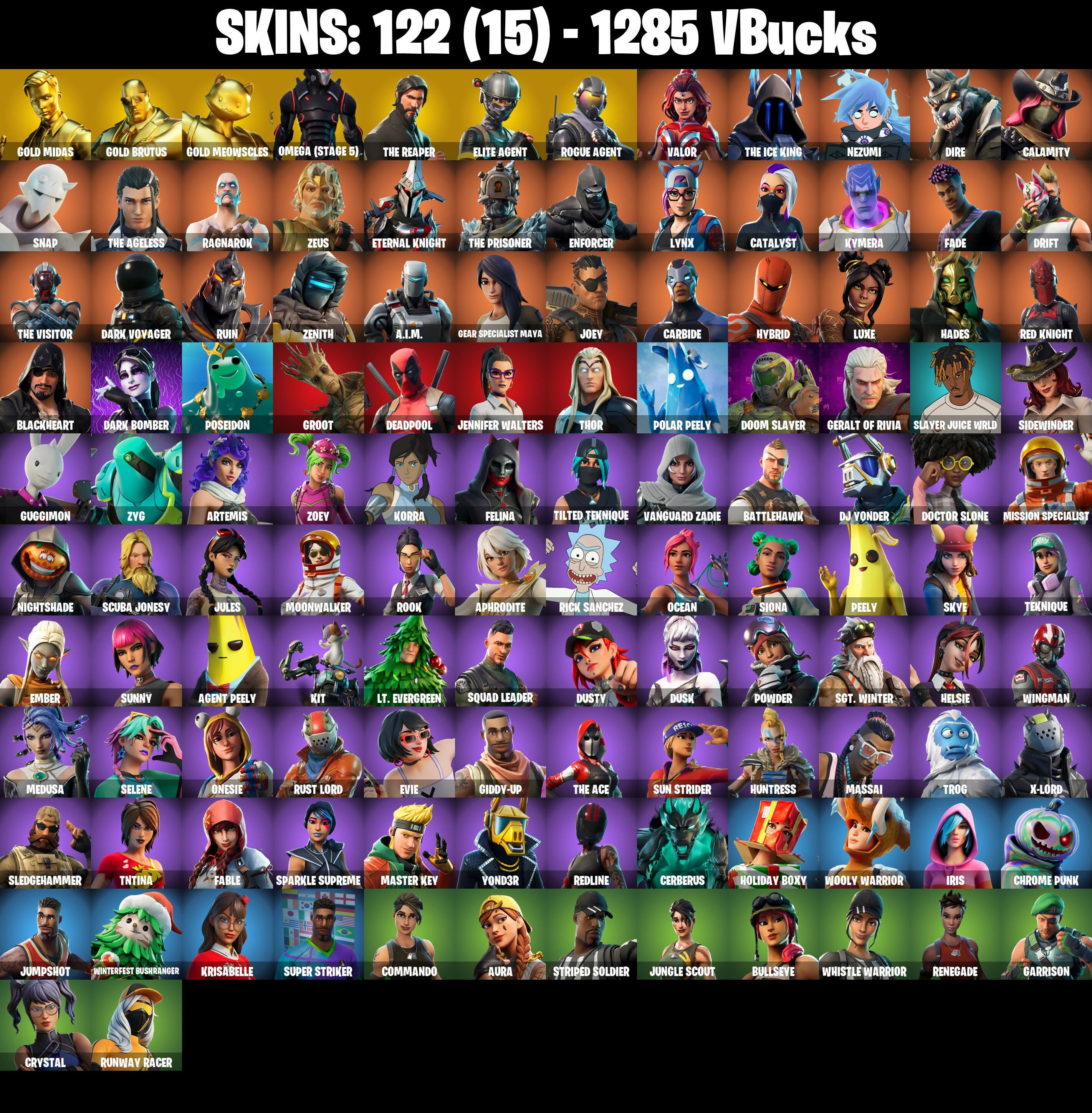 PC/PSN/XBOX |122 skins | Deadpool | Gold Midas | Gold Brutus | Gold Meowscles | Omega (stage 5) | The Reaper | Elite Agent | Take The L | #B764