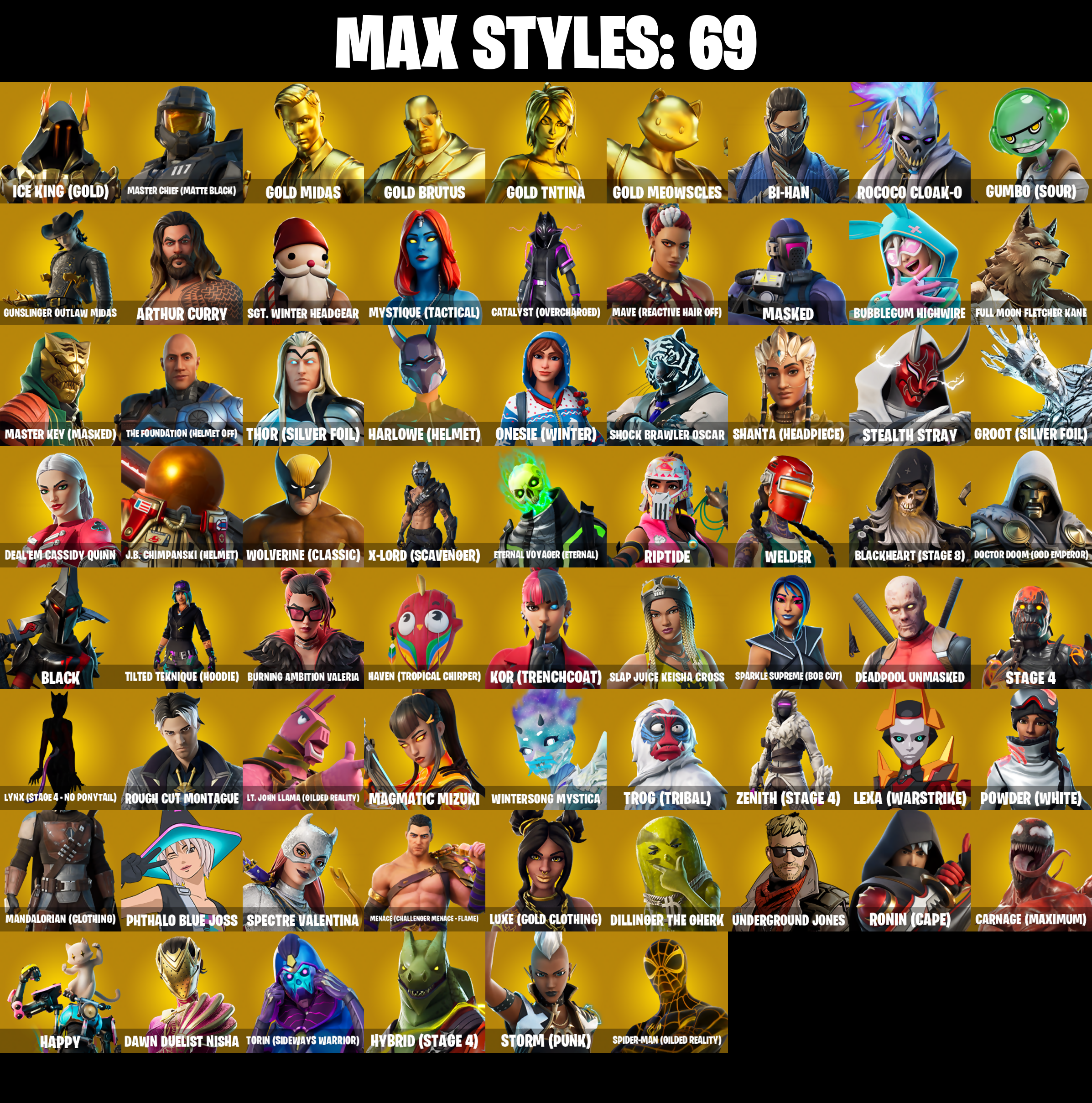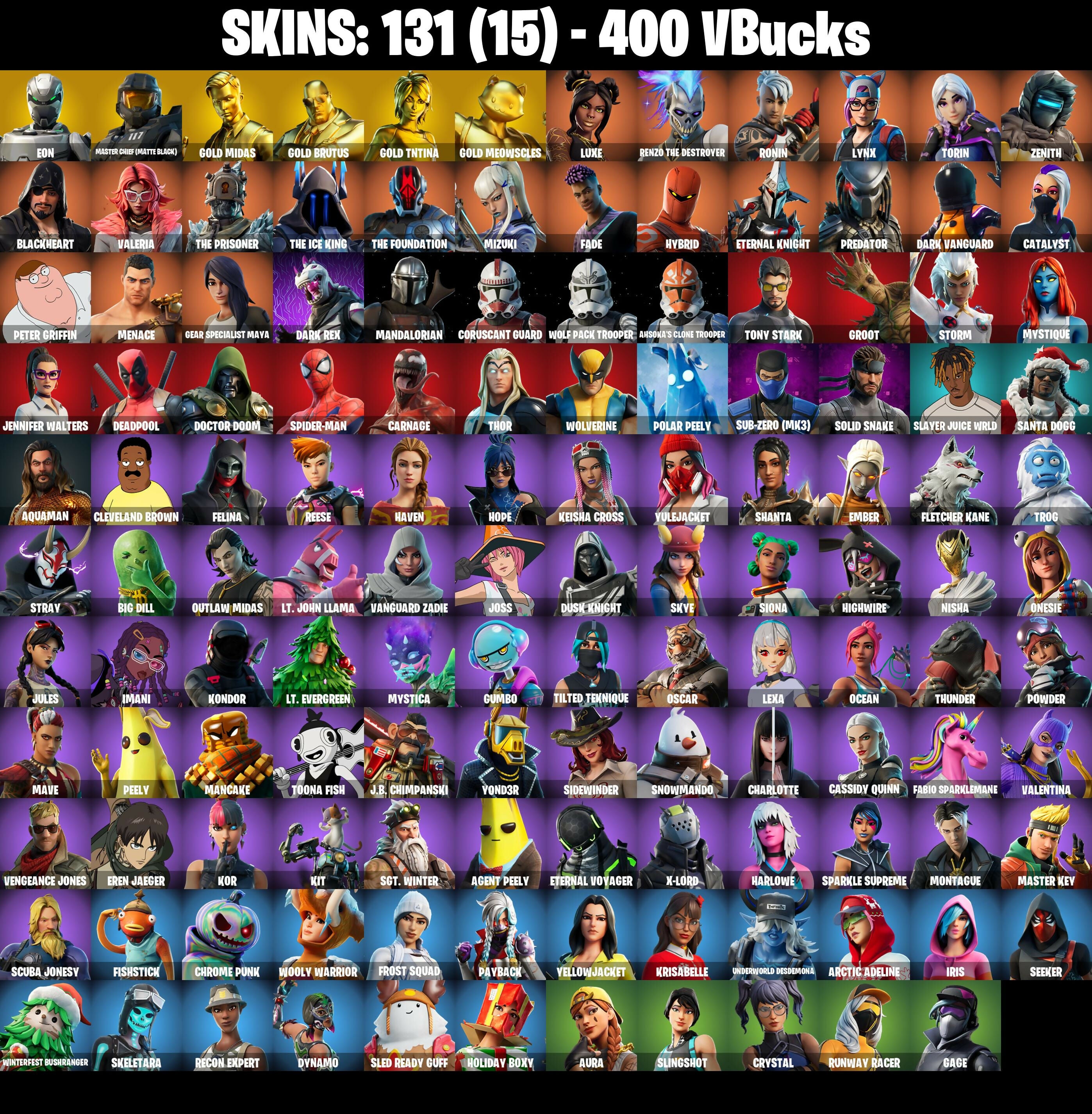 PC/PSN/XBOX |131 skins | Eon | Deadpool | Master Chief (Matte Black) | Gold Midas | Gold Brutus | Gold TNTina | Gold Meowscles | Resonator | #B718