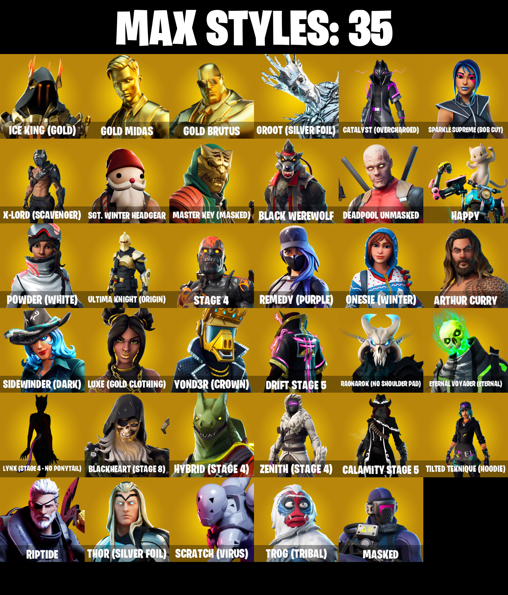 PC/PSN/XBOX |132 skins | Merry Mint Axe | Deadpool | Gold Midas | Gold Brutus | Candy Axe | Reaper | World Warrior | Drift | Ragnarok | Dire | #B910