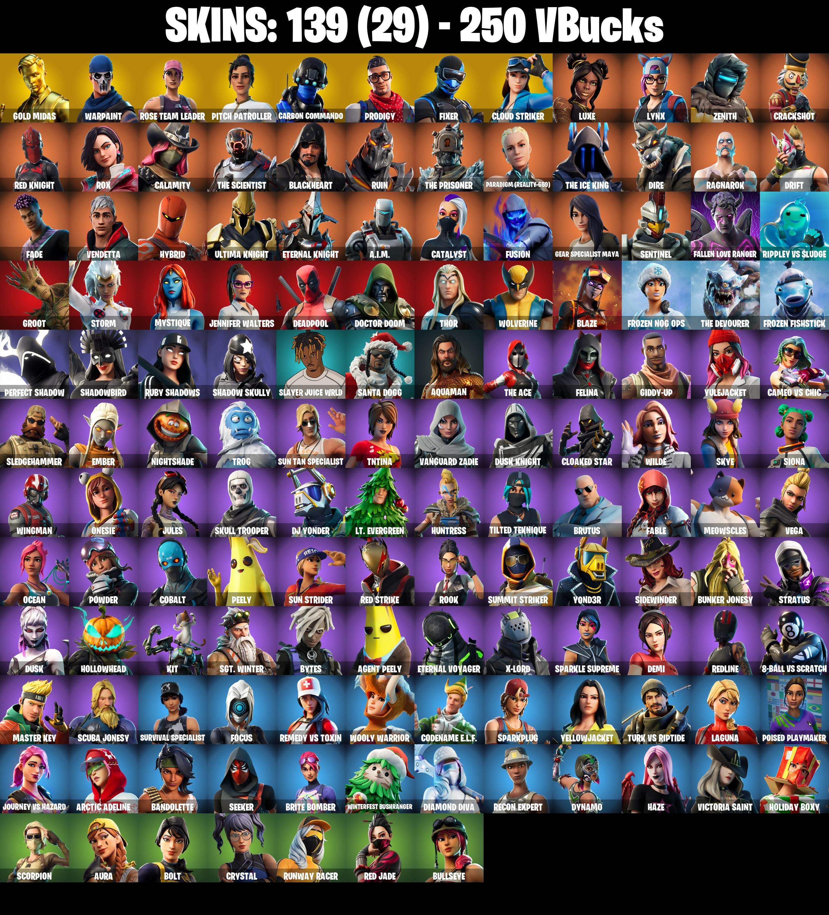PC/PSN/XBOX |139 skins | OG STW | Deadpool | Gold Midas | Reaper | Drift | Ragnarok | Dire | The Ice King | Luxe | Peely | Vendetta | #B729