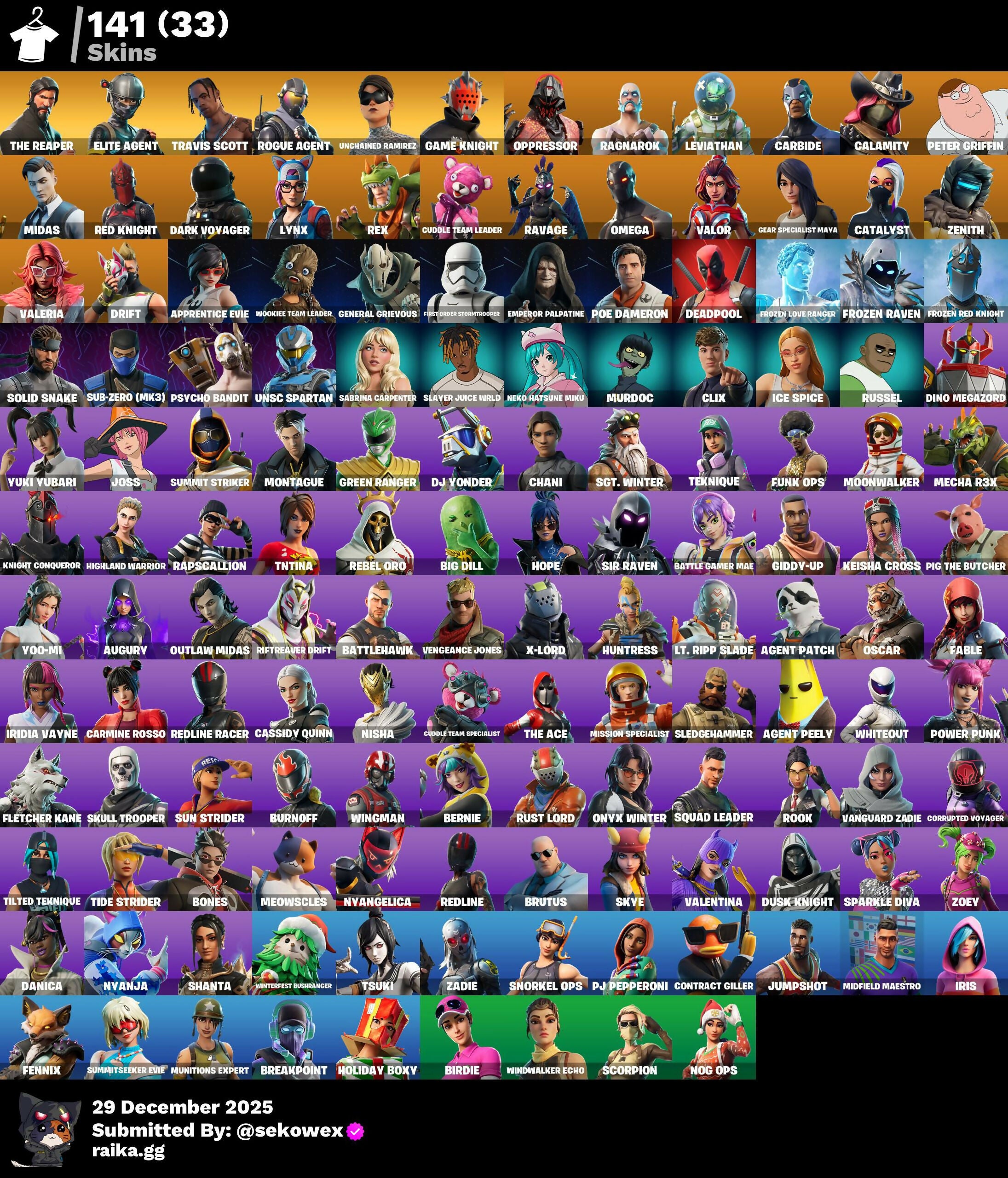 [PC/PSN/XBOX] 141 skins | The Reaper | Elite Agent | Travis Scott | Rogue Agent | Unchained Ramirez | Game Knight | Oppressor | Ragnarok | Leviathan | 300 VB