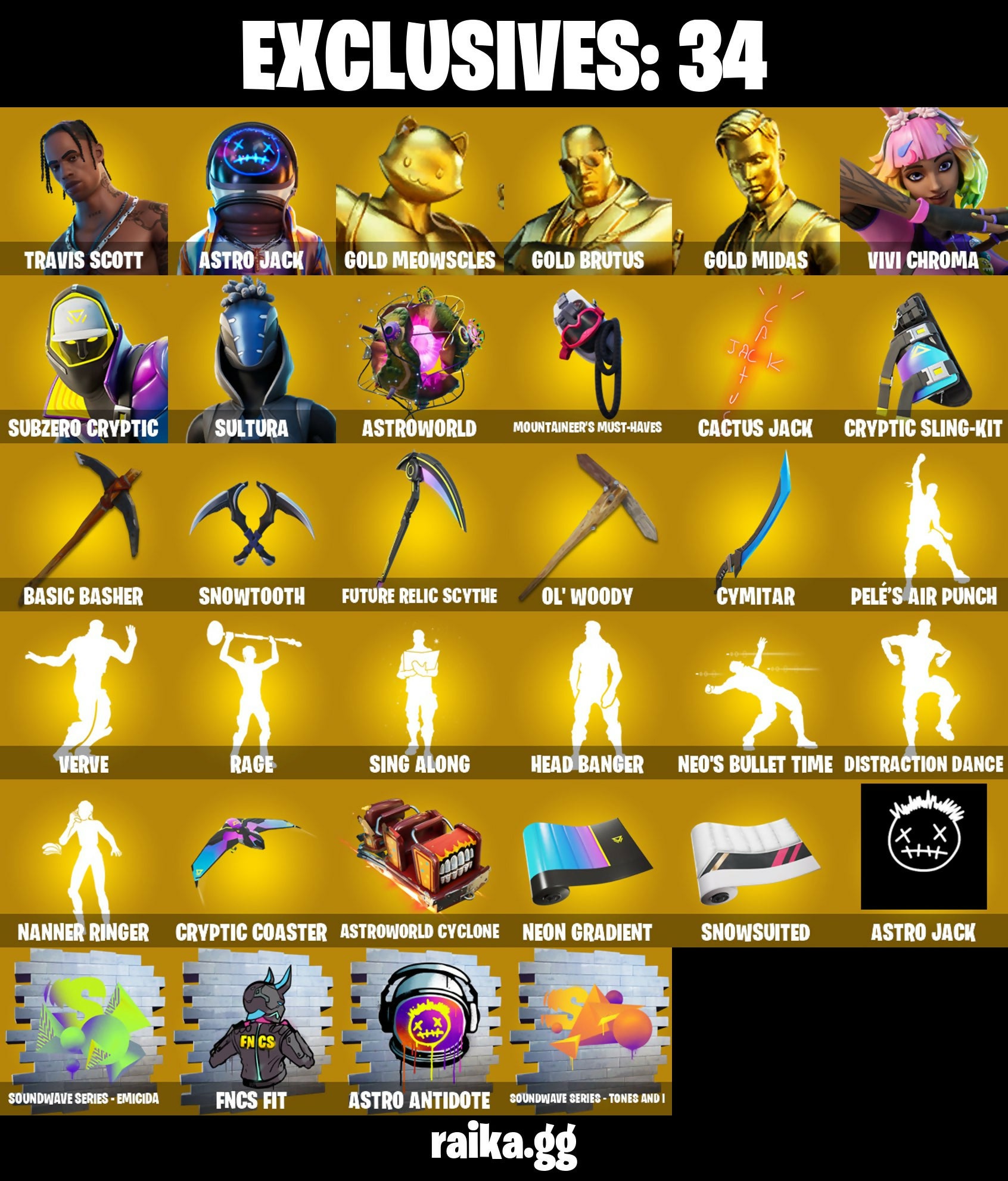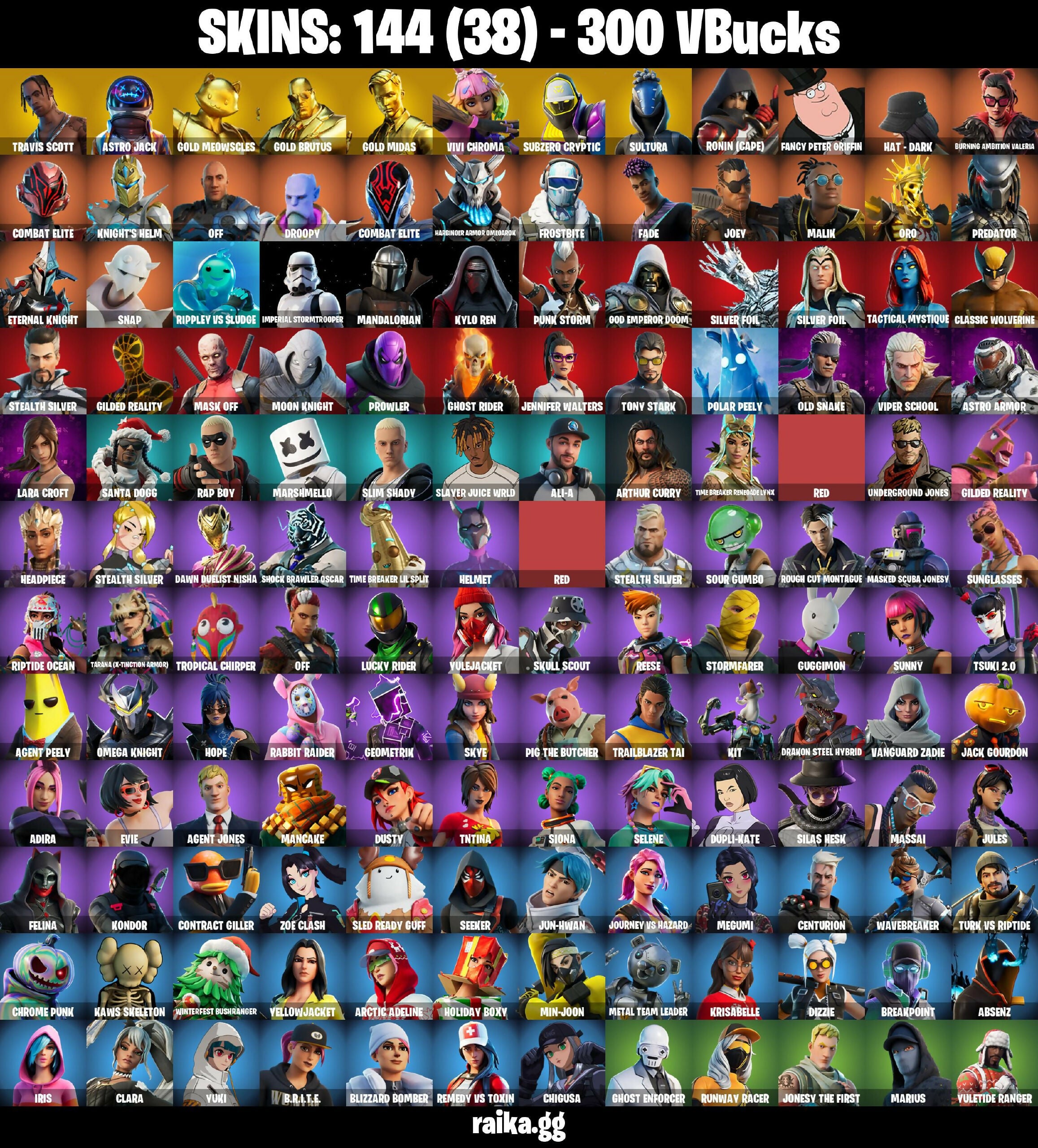 [PC/PSN/XBOX] 144 Stacked OG skins | Travis Scott | Astro Jack | Gold Meowscles | Gold Brutus | Gold Midas | Vivi Chroma | Cactus Jack | Lara Croft | Yellow Jacket 300 VB