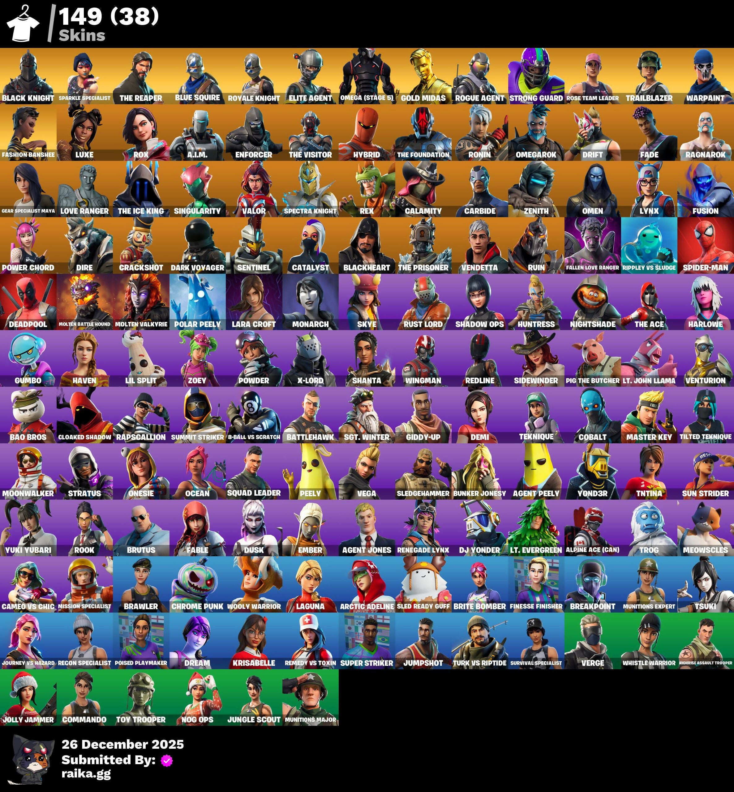 [PC/PSN/XBOX] 149 skins | OG STW | Black Knight | Sparkle Specialist | The Reaper | Blue Squire | Royale Knight | Elite Agent | Omega (stage 5) | Gold Midas | 450 VB