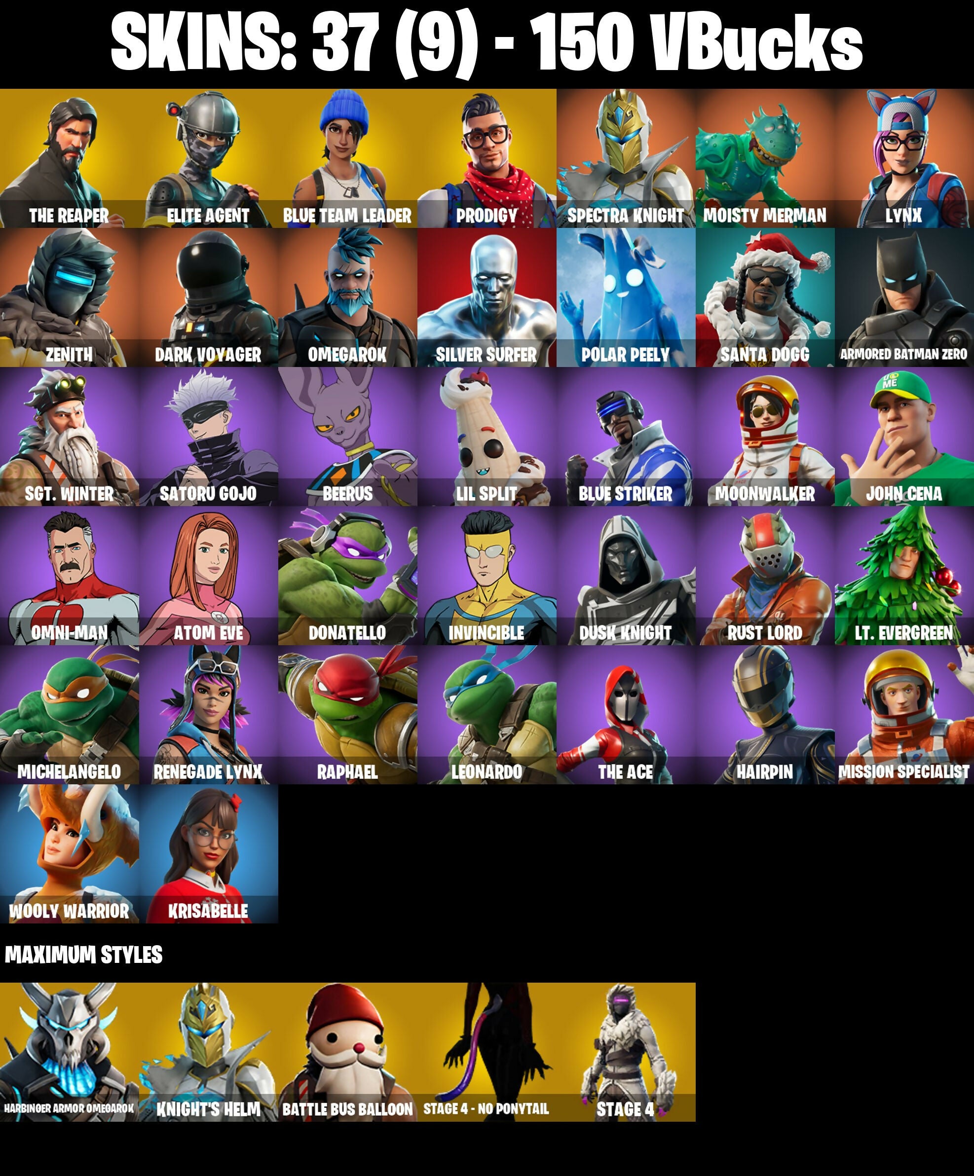 (PC/PSN/XBOX) 150 VB) 37 skins | The Reaper | Elite Agent | Blue Team Leader | Prodigy | Spectra Knight | Moisty Merman | Lynx | Zenith
