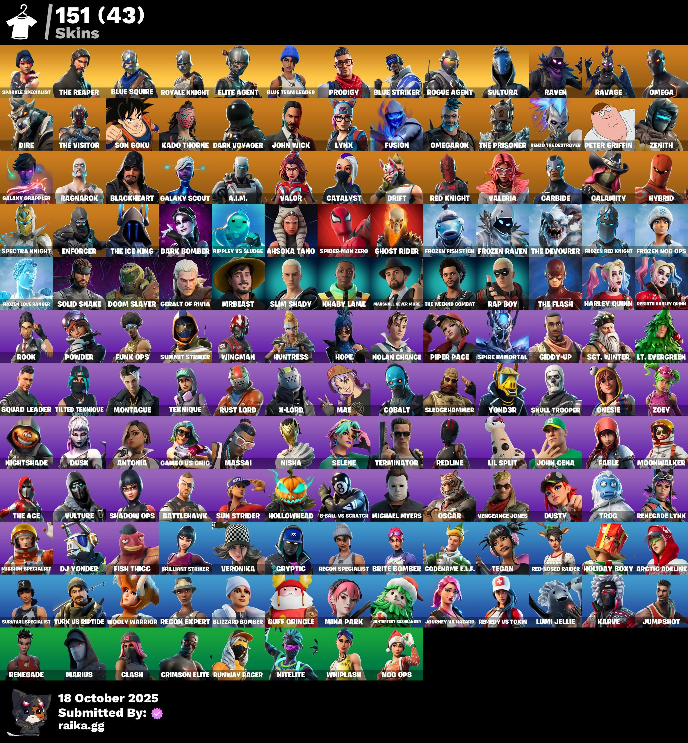 [PC/PSN/XBOX] 151 skins | Sparkle Specialist | The Reaper | Blue Squire | Royale Knight | Elite Agent | Blue Team Leader | Prodigy | Blue Striker | 750 VB