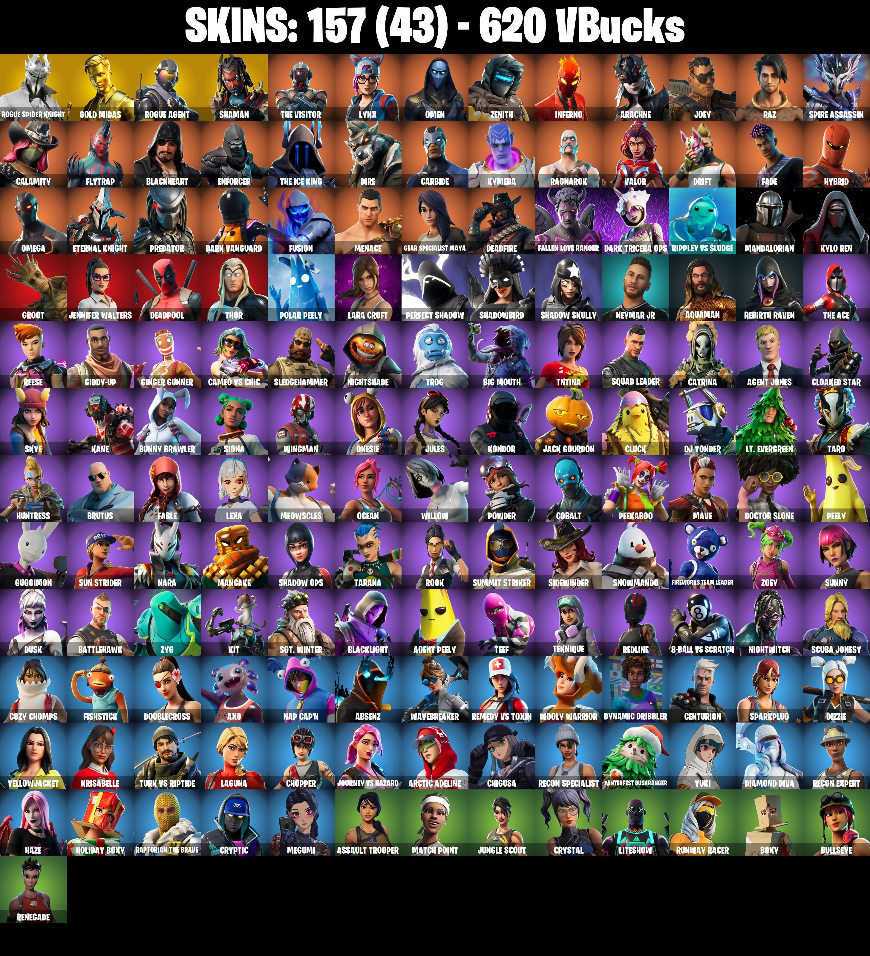 PC/PSN/XBOX |157 skins | Rogue Spider Knight | Lara Croft | Deadpool | Gold Midas | Candy Axe | Reaper | Omega | Orange Justice | Rogue Agent | #B721