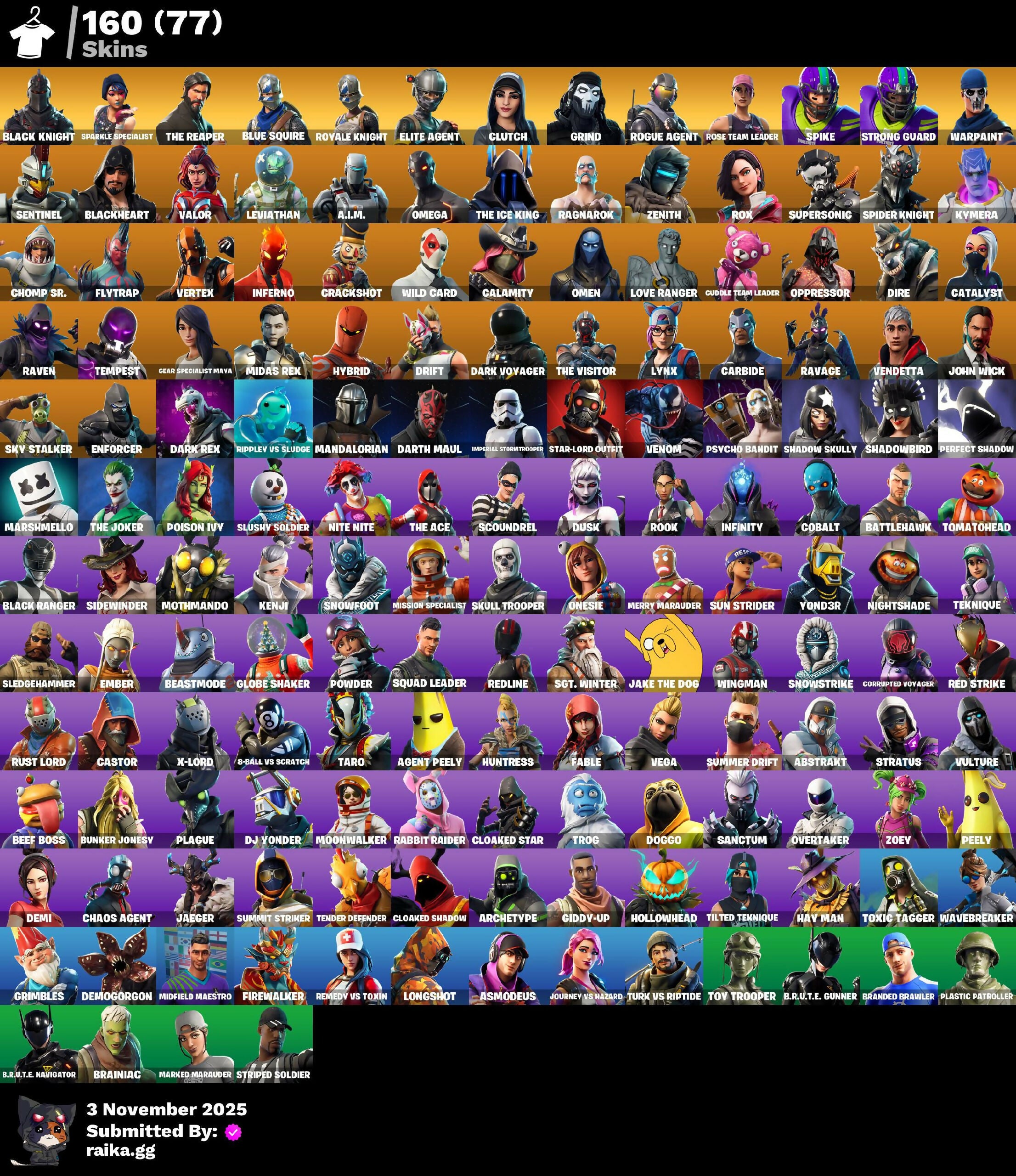 [PC/PSN/XBOX] 160 skins | OG STW | Black Knight | Sparkle Specialist | The Reaper | Blue Squire | Royale Knight | Elite Agent | Clutch | Grind | Rogue Agent | 400 VB