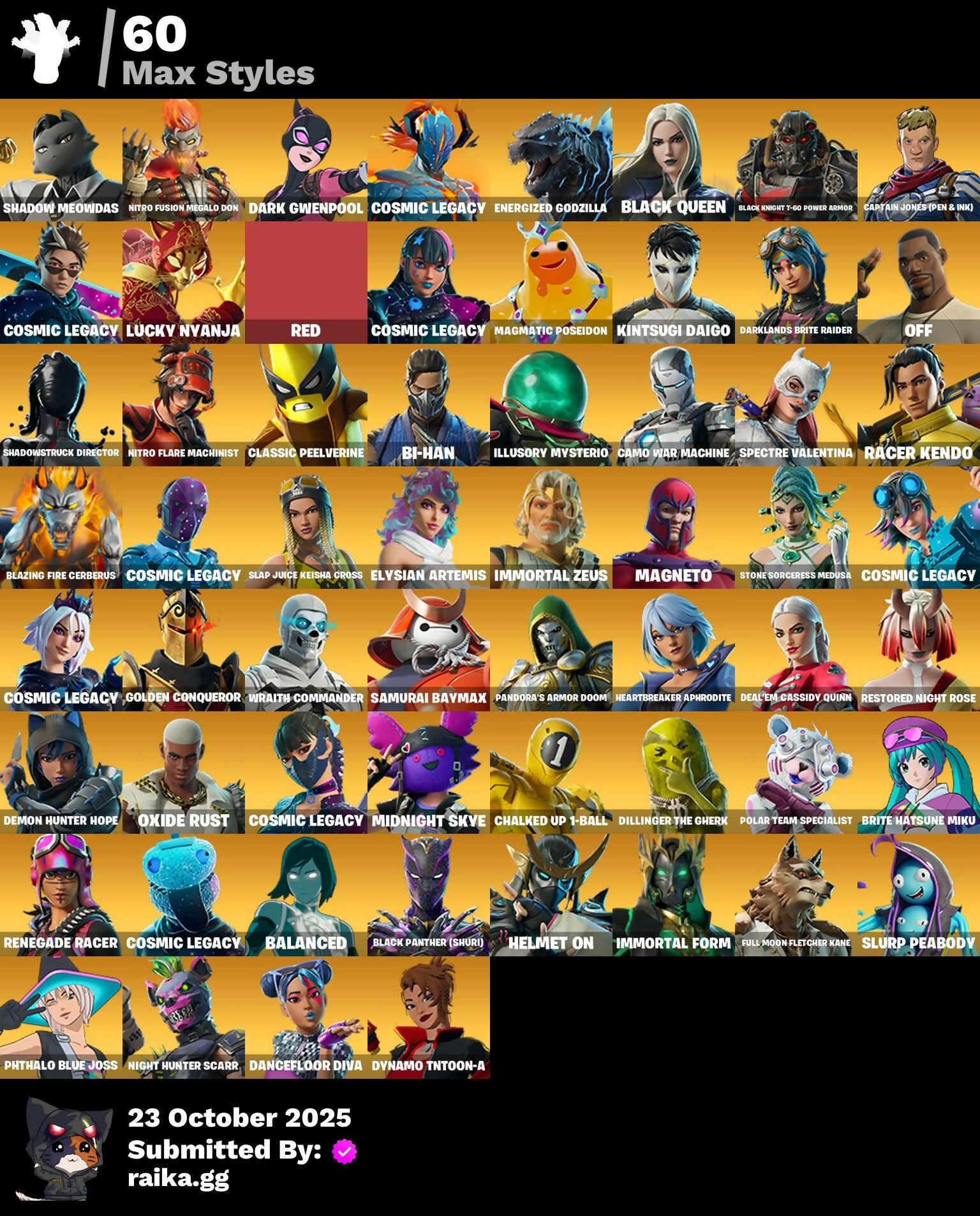 [PC/PSN/XBOX] 180 skins | Renegade Raider | Chun Li | Zeus | Wild Card | Backlash | Hades | Poseidon | General Grievous | Wookiee Team Leader | 750 VB / FN