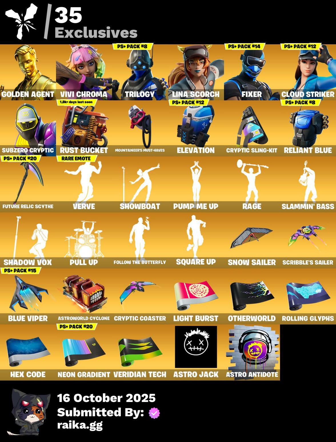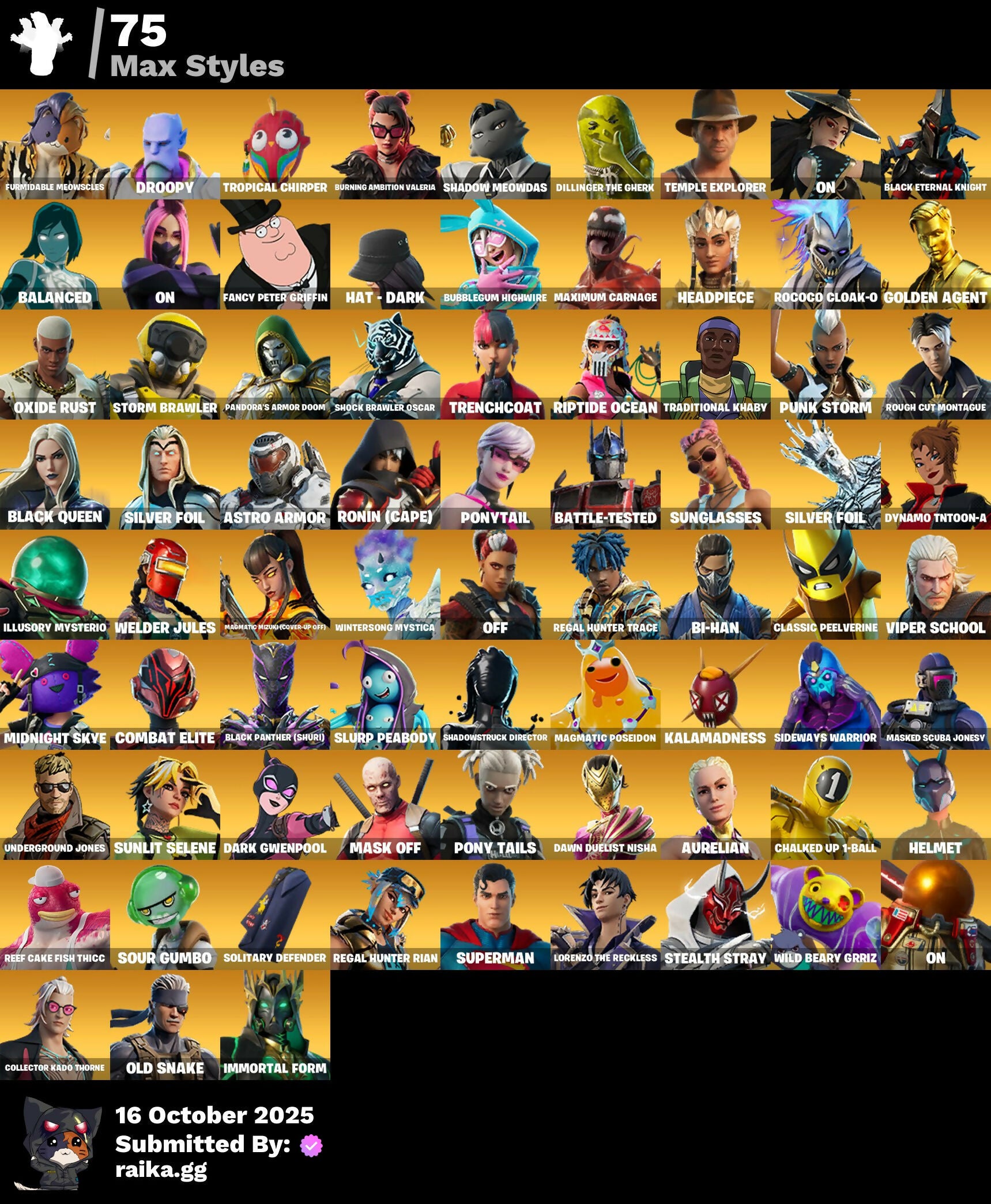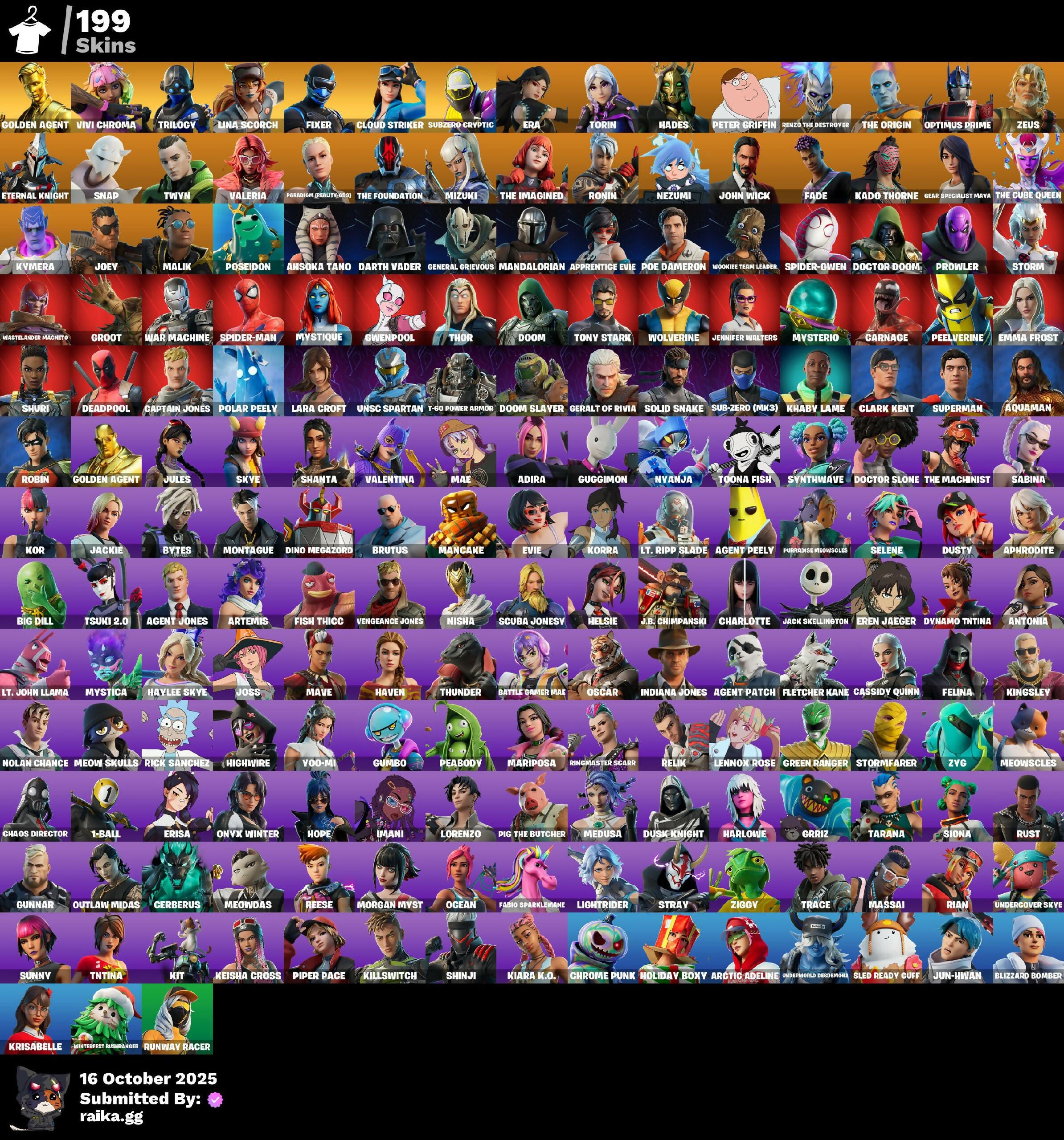 [PC/PSN/XBOX] 199 skins | GOLDEN AGENT | Vivi Chroma | Trilogy | Lina Scorch | Fixer | Cloud Striker | Subzero Cryptic | Era | Torin | Hades | Peter Griffin | 1300 VB / FN