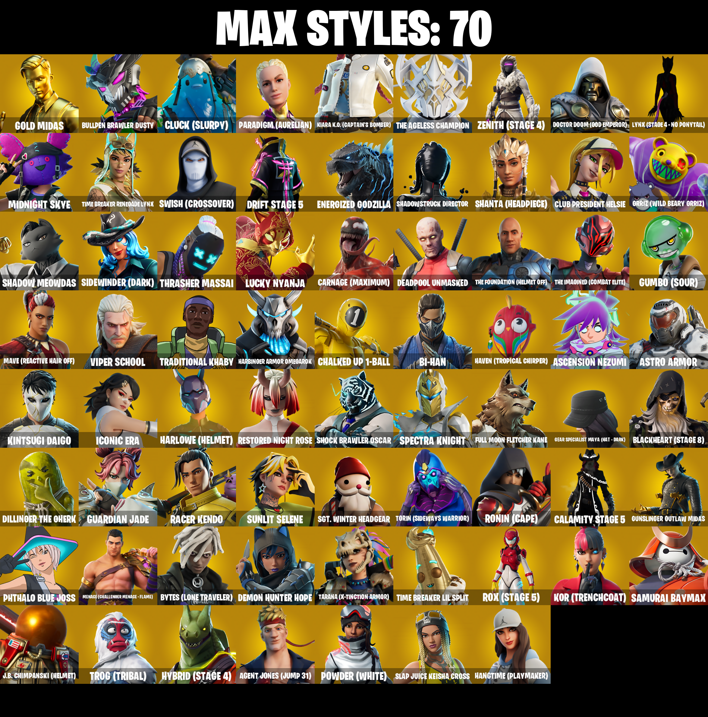 PC/PSN/XBOX |208 skins | Gold Midas | Snake Eyes | Rust Bucket | Orange Justice | Rage | Laugh It Up | Take The Elf | Leave The Door Open | #B623