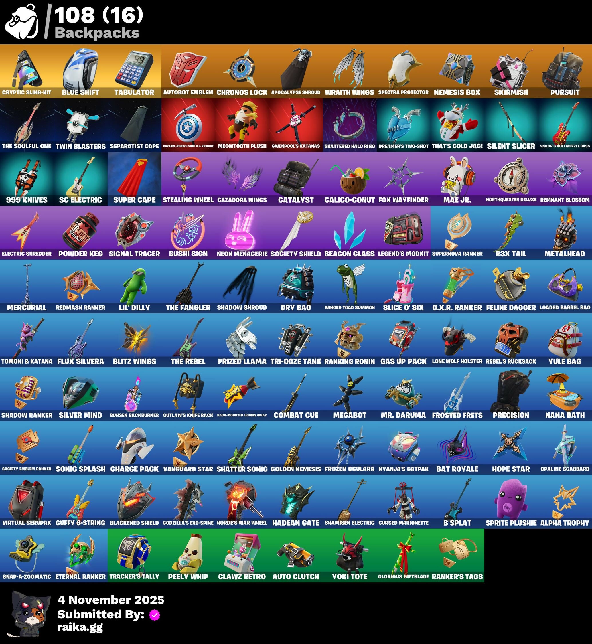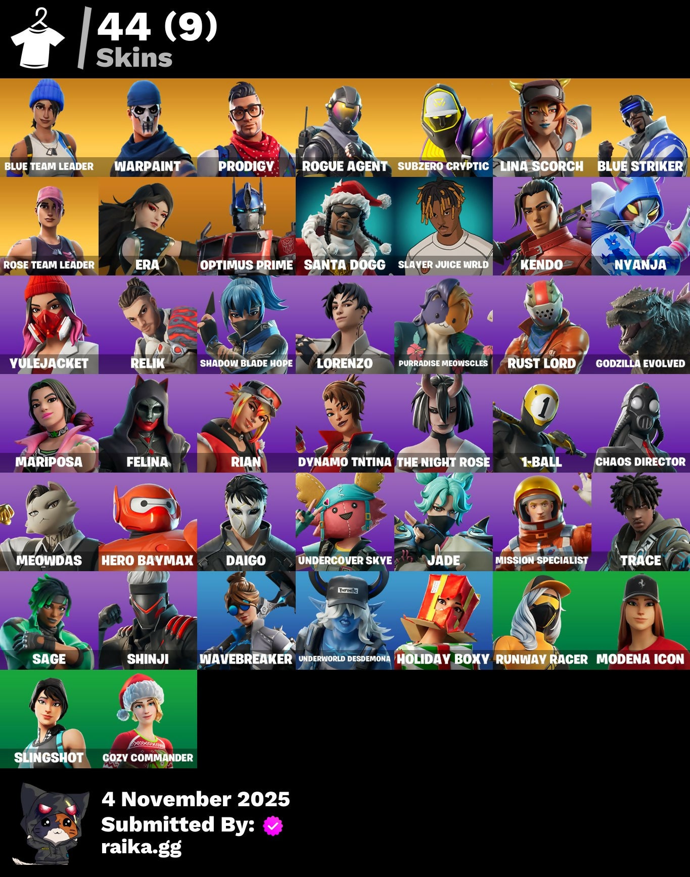 [PC/PSN/XBOX] 44 skins | OG STW | Blue Team Leader | Prodigy | Rogue Agent | Subzero Cryptic | Lina Scorch | Blue Striker | Era | Optimus Prime | Santa Dogg | 500 VB