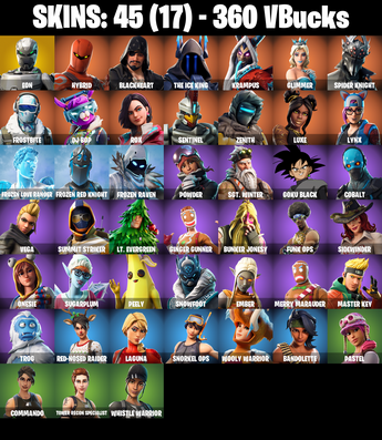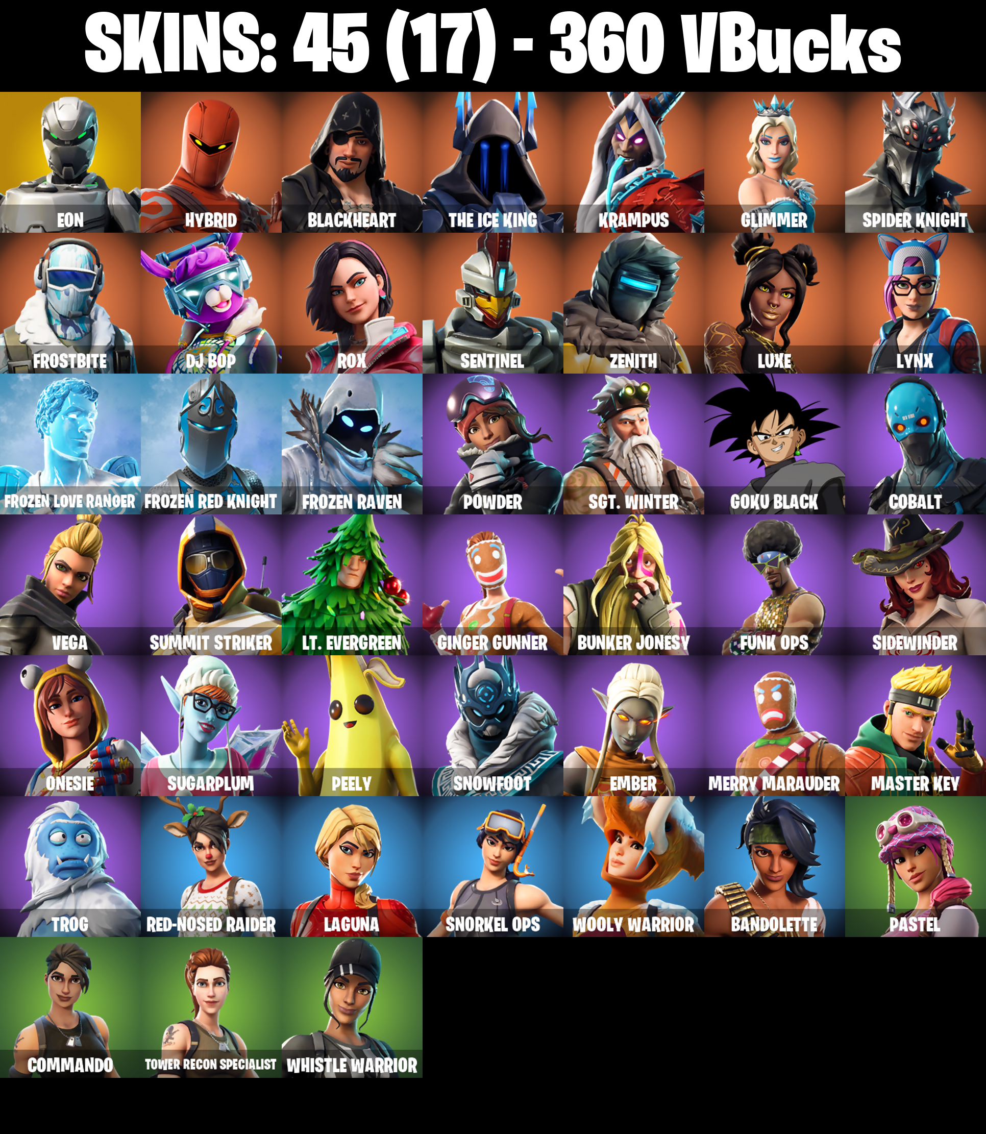 PC/PSN/XBOX |45 skins | Eon | Candy Axe | Resonator | Aurora | The Ice King | Luxe | Peely | Ride The Pony | Lynx | Frostbite | Sing Along | #B989