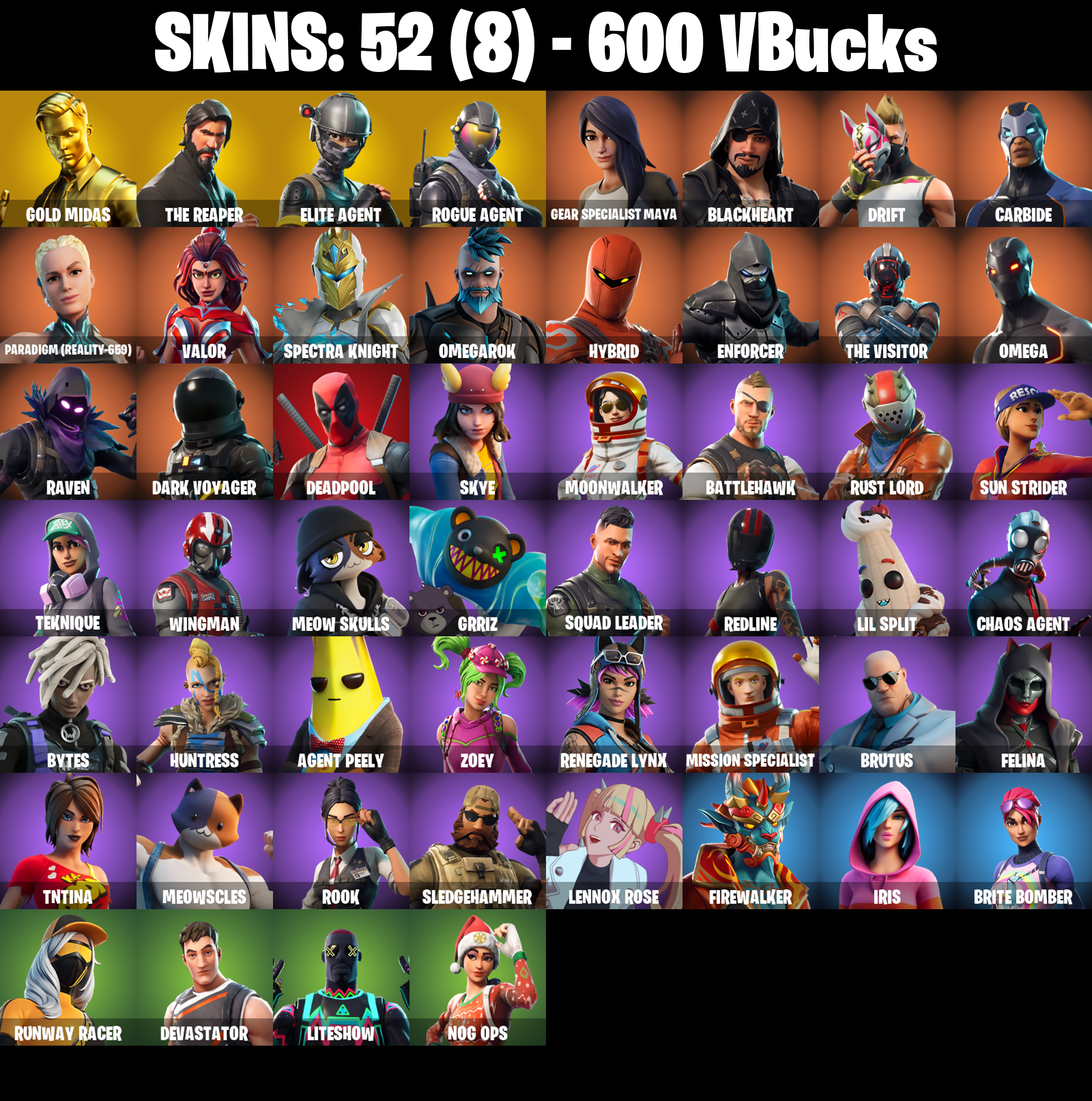 PC/PSN/XBOX |52 skins | Deadpool | Gold Midas | The Reaper | Elite Agent | Omega | Take The L | Mako | Orange Justice | Dark Voyager | #B1138