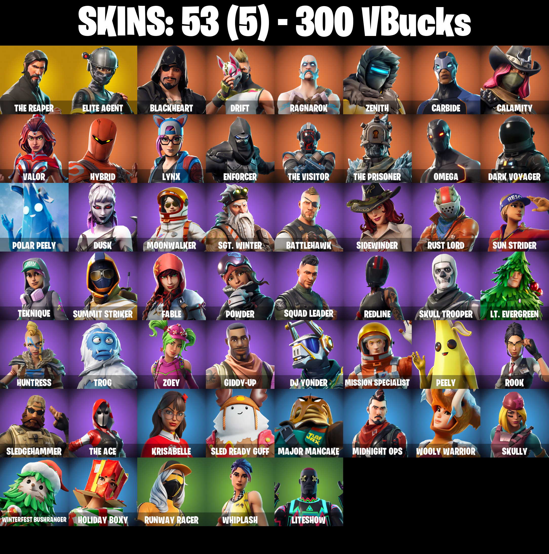 PC/PSN/XBOX |53 skins | The Reaper | Elite Agent | Omega | Take The L | Mako | Orange Justice | Dark Voyager | Drift | Carbide | Trusty No. 2 | #B1137