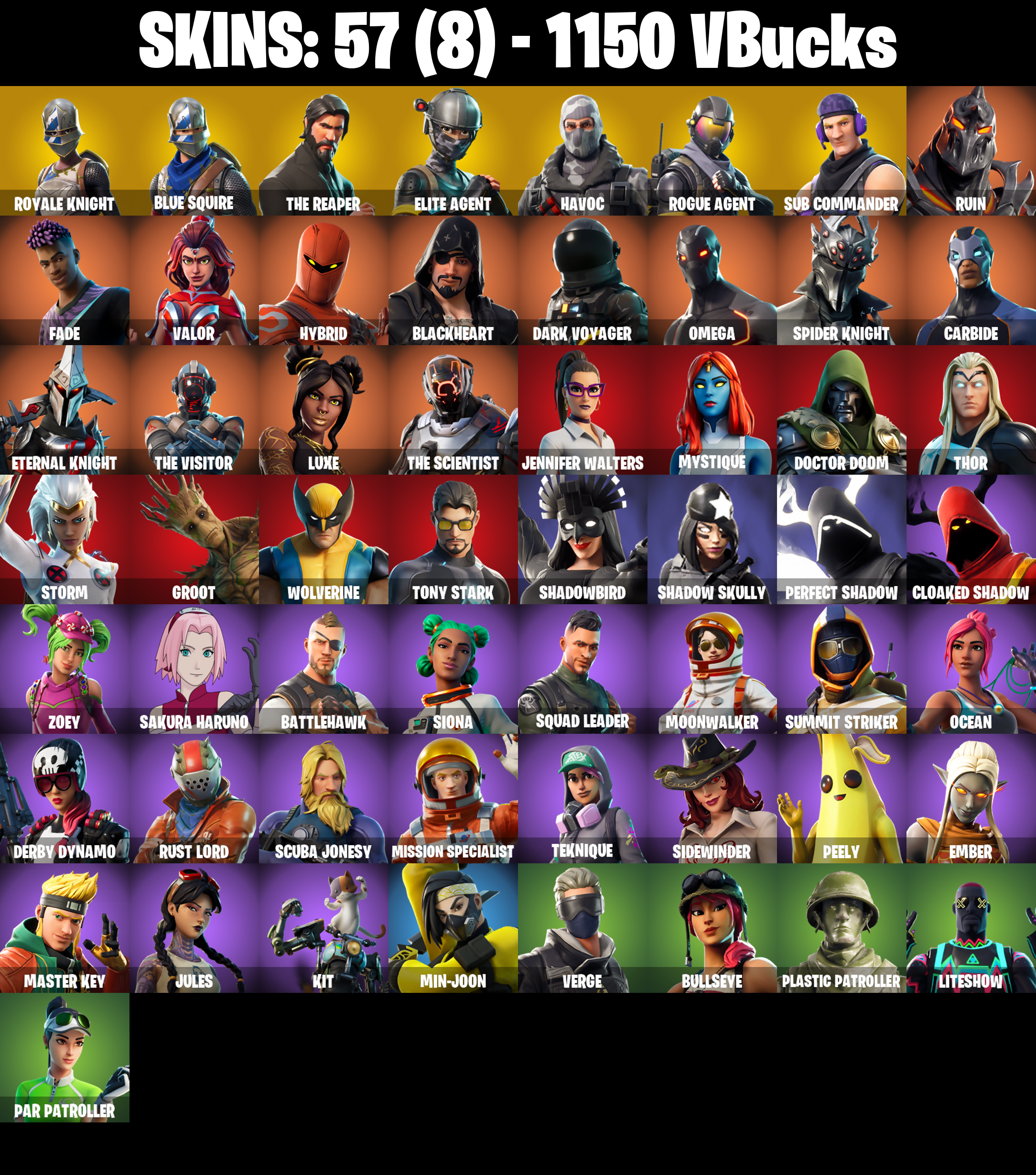 PC/PSN/XBOX |57 skins | Royale Knight | Sakura Haruno | Blue Squire | The Reaper | Elite Agent | Havoc | Backup Plan | Omega | Take The L | #B1064