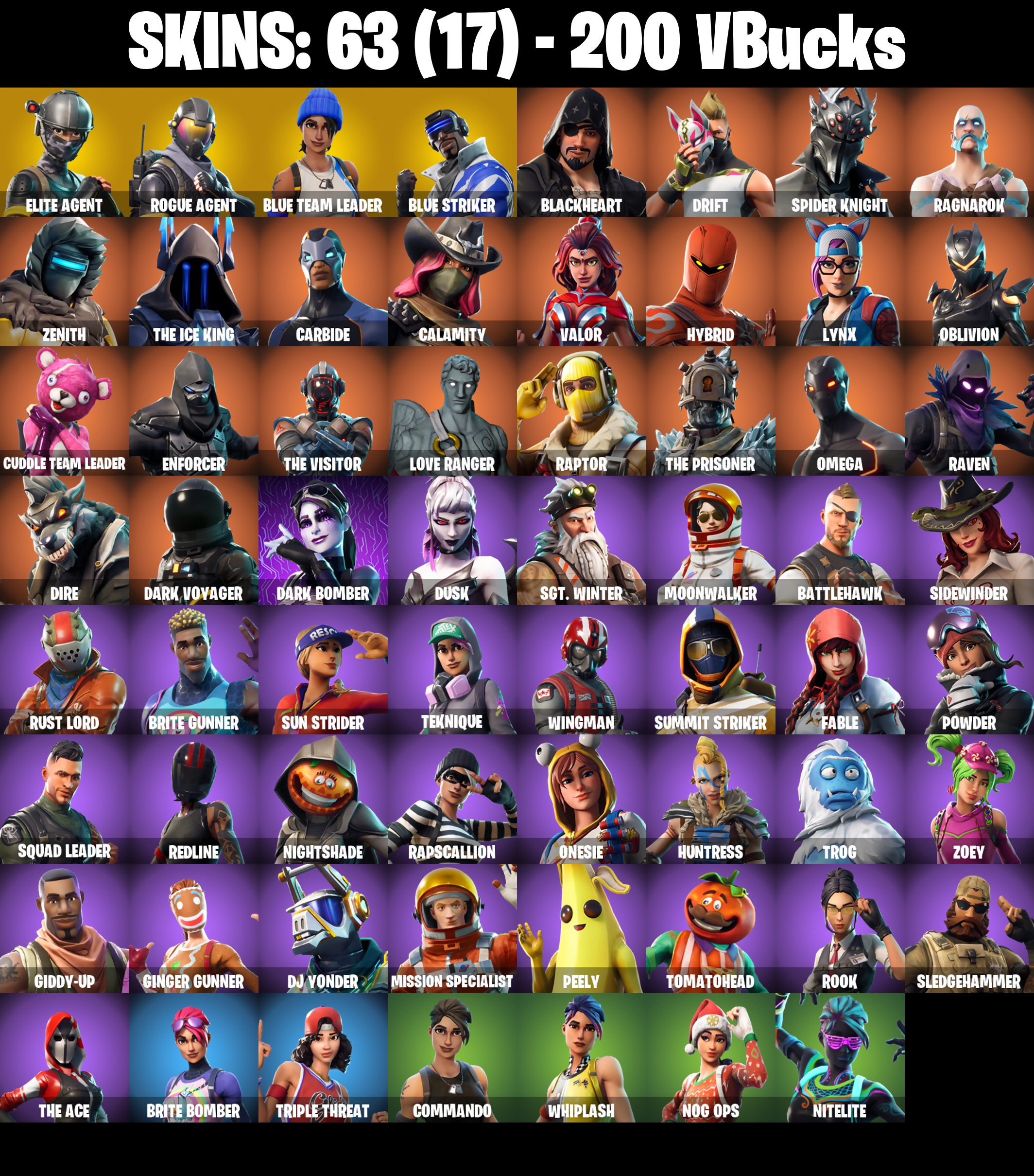 PC/PSN/XBOX |63 skins | Elite Agent | Omega | Take The L | Orange Justice | Tidy | Dark Voyager | Rogue Agent | Drift | Carbide | #B1117