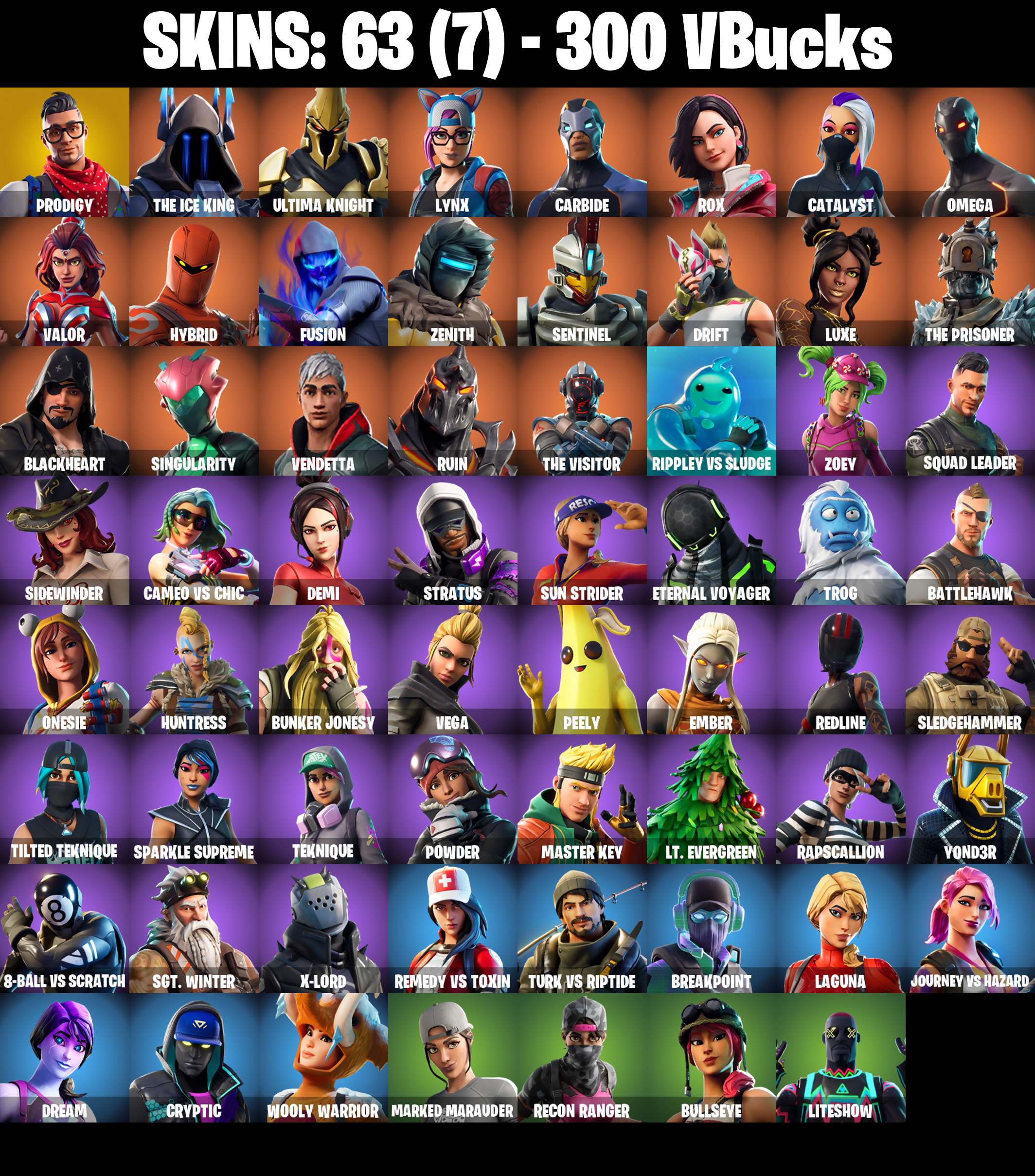 PC/PSN/XBOX |63 skins | Omega | Mako | Orange Justice | Drift | Carbide | The Ice King | Luxe | Peely | Vendetta | Ultima Knight | Fusion | #B1216