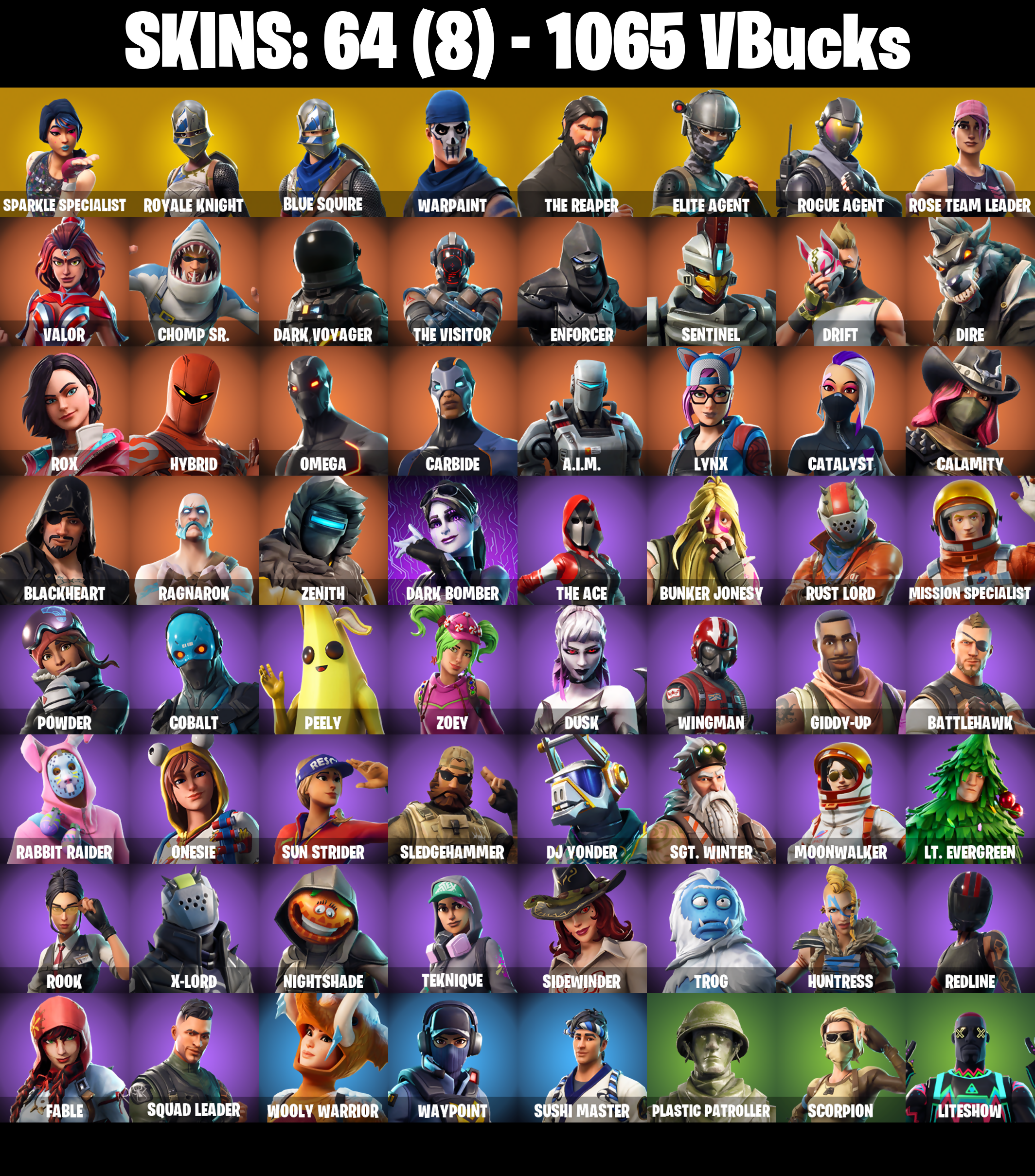PC/PSN/XBOX |64 skins | OG STW | Sparkle Specialist | Floss | Royale Knight | Blue Squire | The Reaper | Elite Agent | Omega | Take The L | #B684