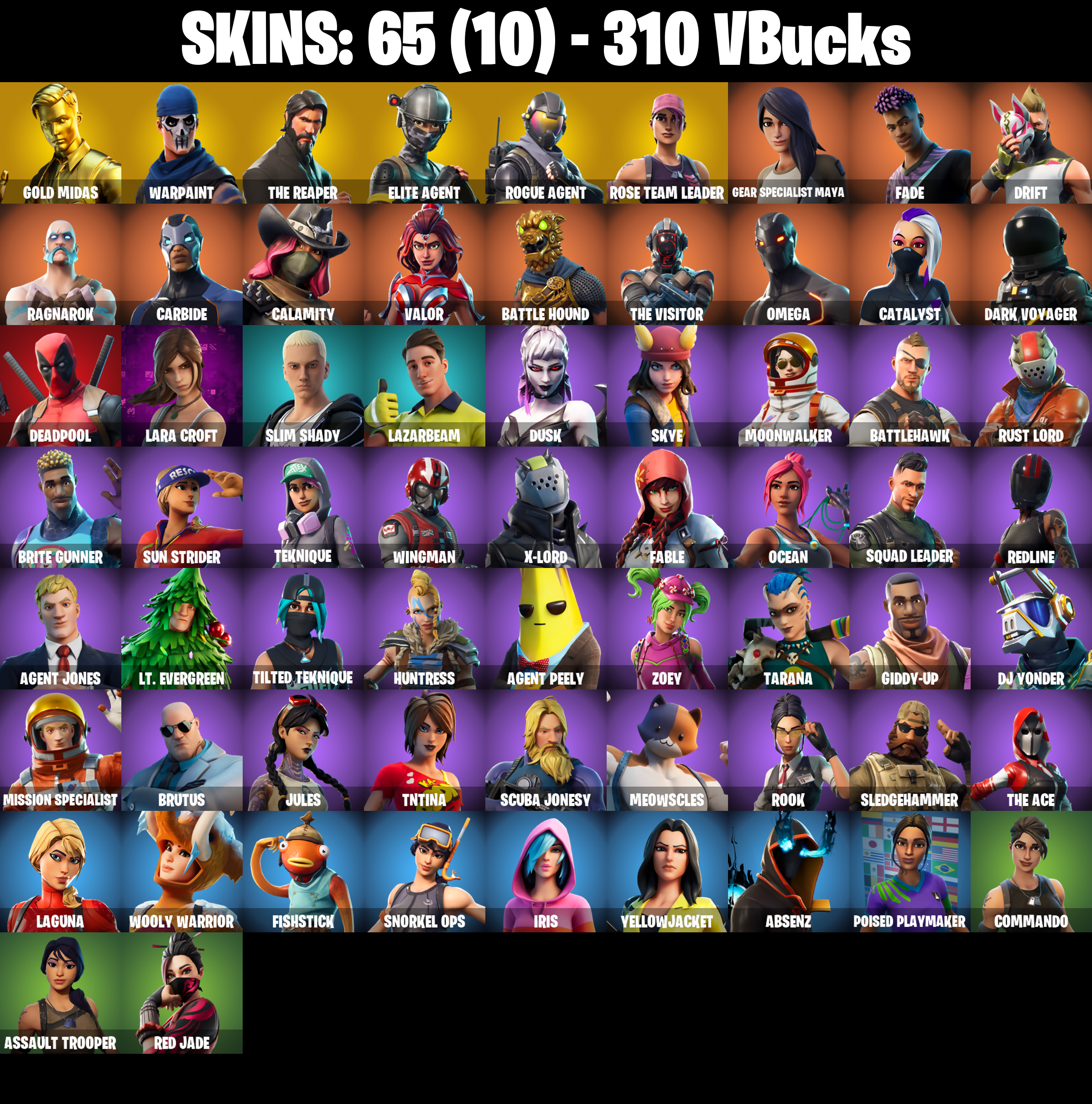 PC/PSN/XBOX |65 skins | OG STW | Lara Croft | Deadpool | Gold Midas | The Reaper | Elite Agent | Omega | Take The L | Orange Justice | #B1156