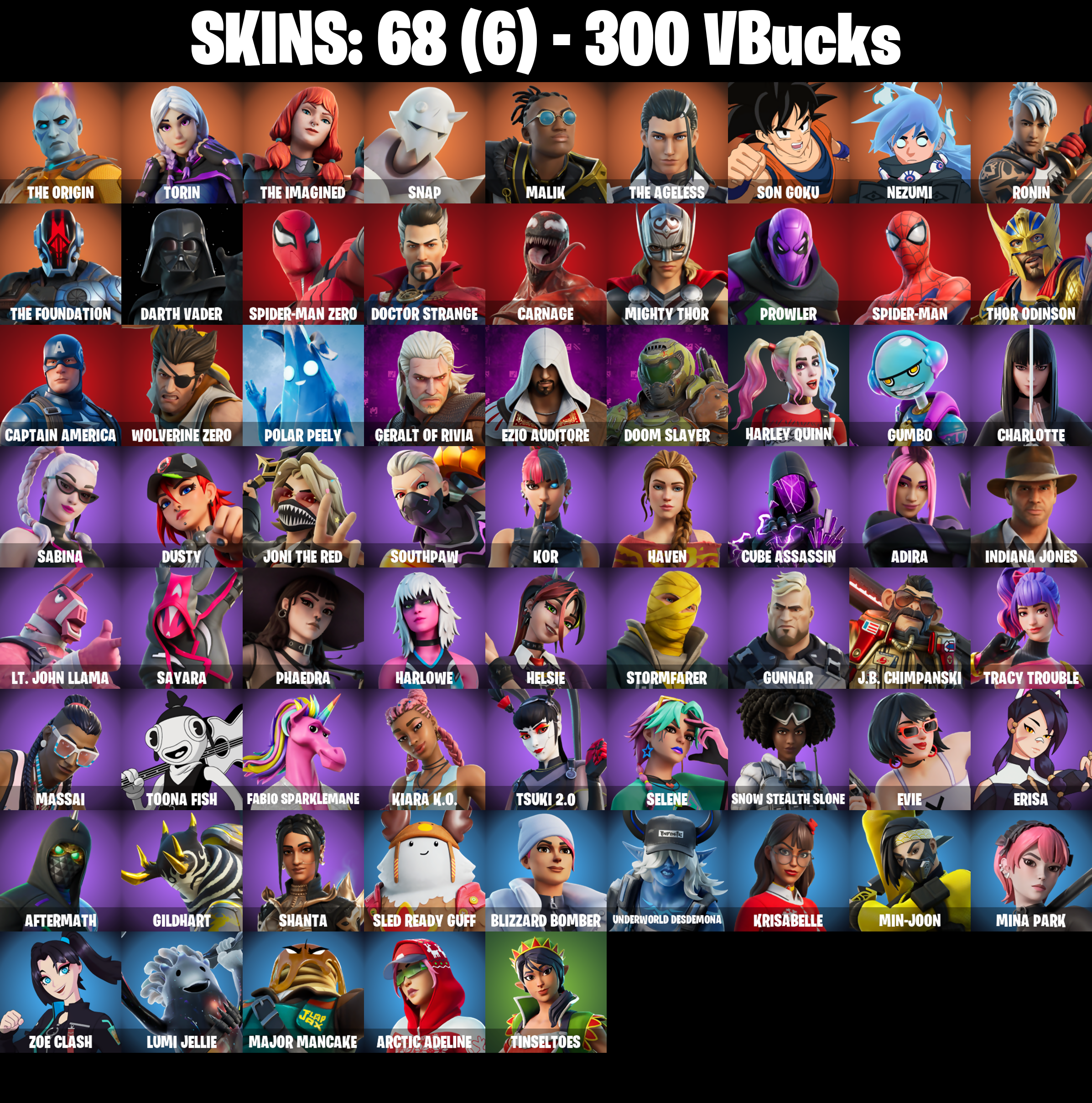 PC/PSN/XBOX |68 skins | Spider-Man | Carnage | Doctor Strange | Darth Vader | The Ageless | Spider-Man Zero | Captain America | The Origin | #B1231