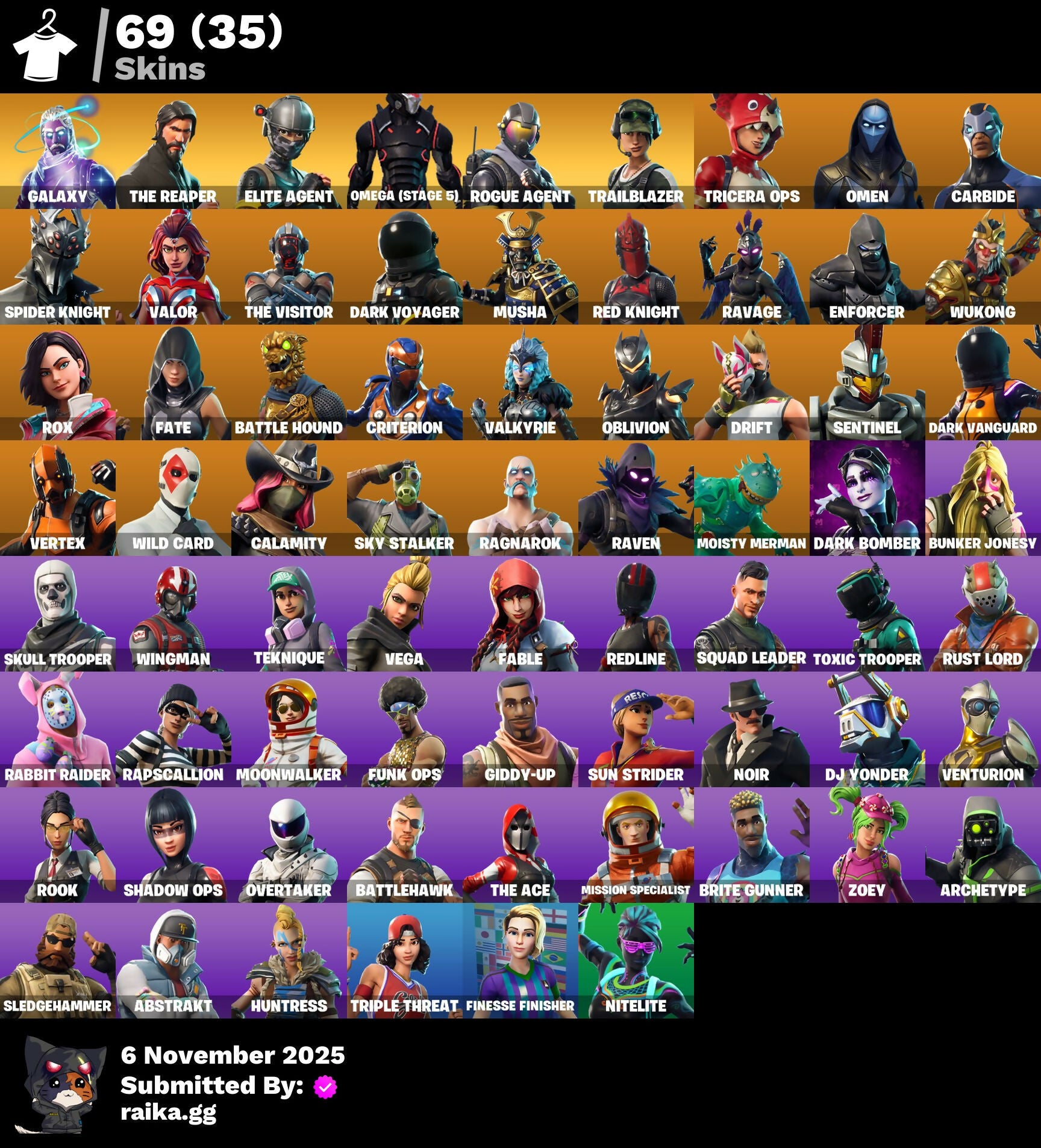 [PC/PSN/XBOX] 69 skins | Galaxy | The Reaper | Elite Agent | Omega (stage 5) | Rogue Agent | Trailblazer | Tricera Ops | Omen | Carbide | Spider Knight | 250 VB