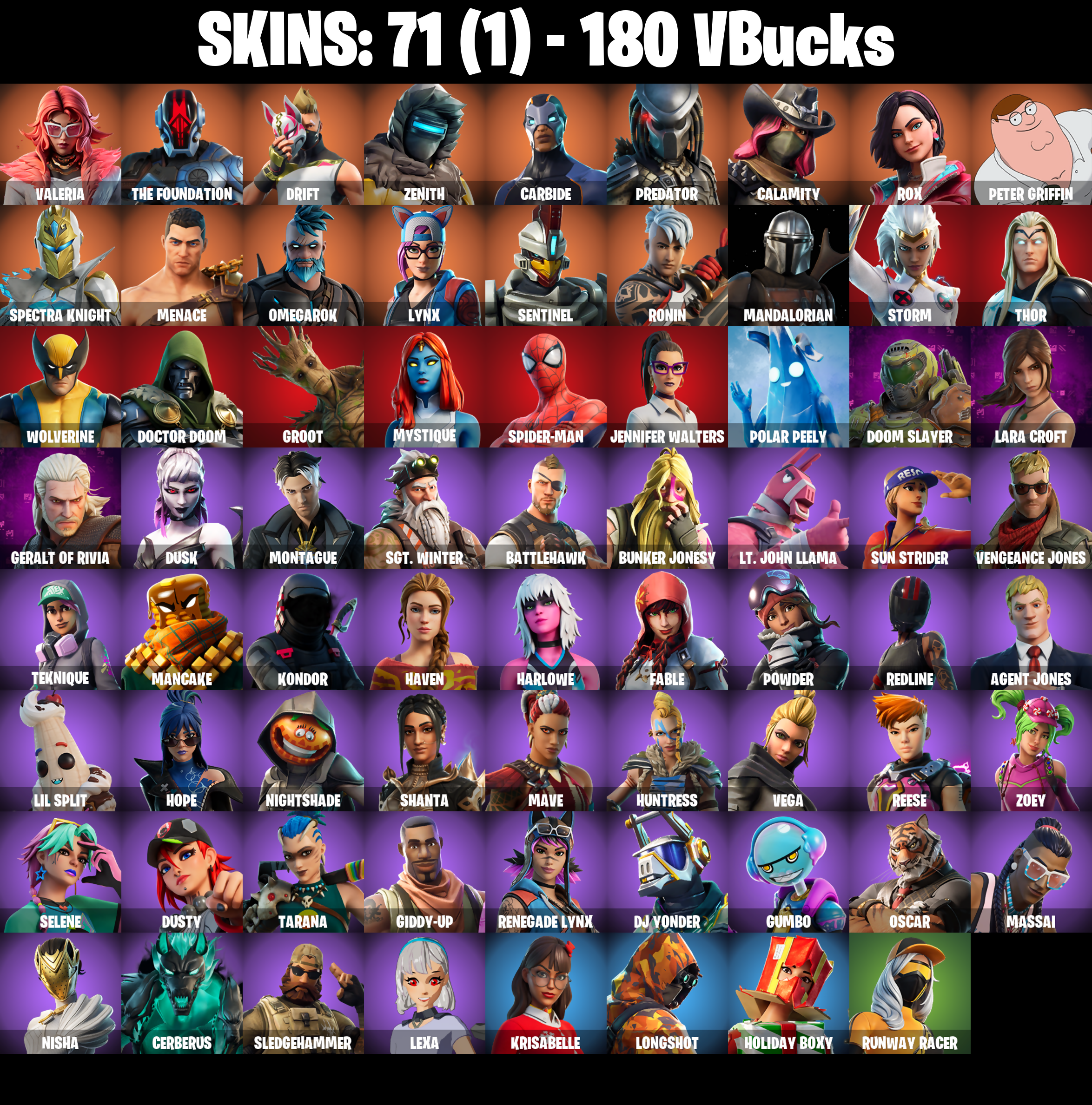 PC/PSN/XBOX |71 skins | Lara Croft | Mako | Orange Justice | Drift | Carbide | Jabba Switchway | Spider-Man | Menace | Ride The Pony | Lynx | #B1195