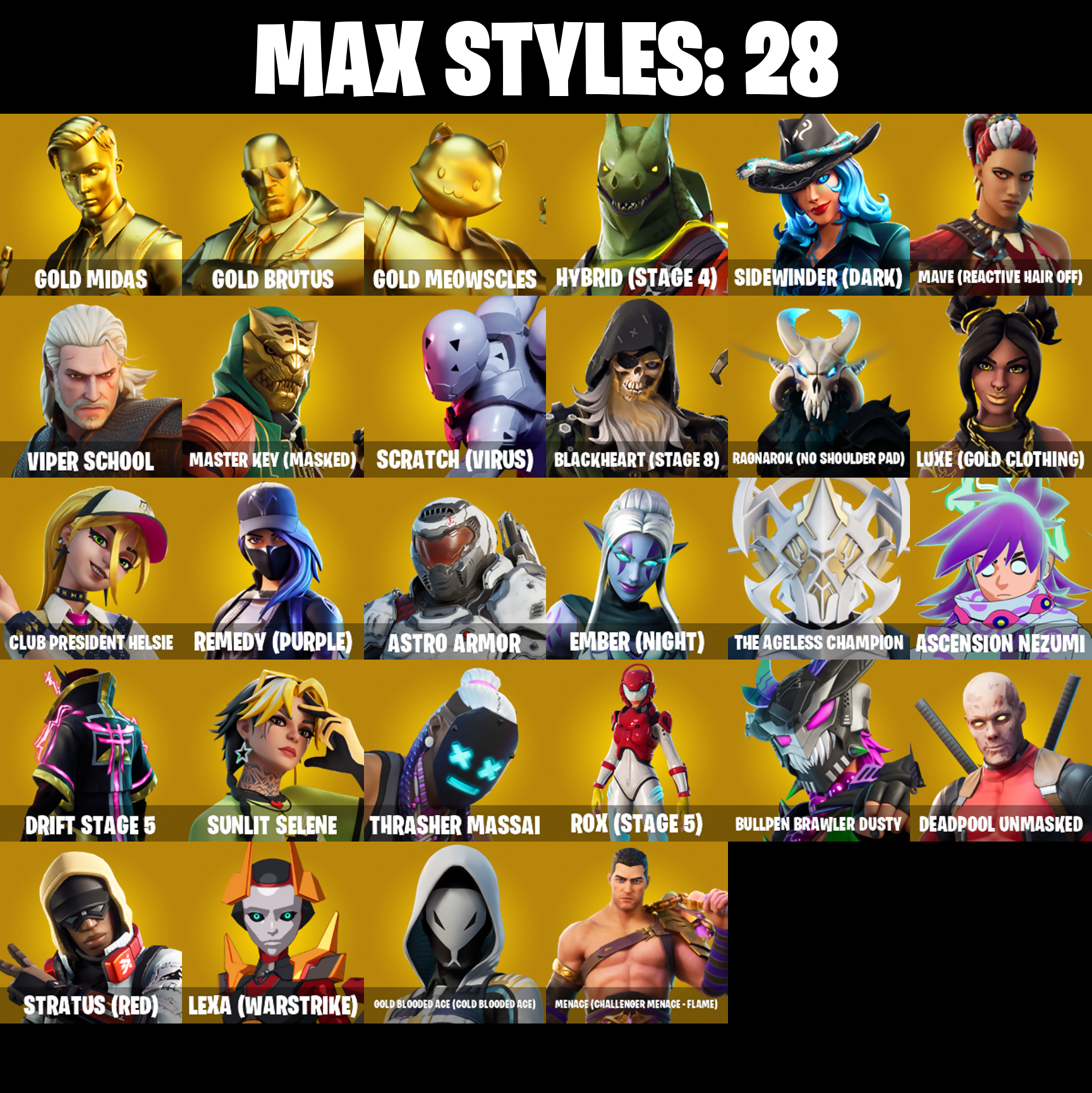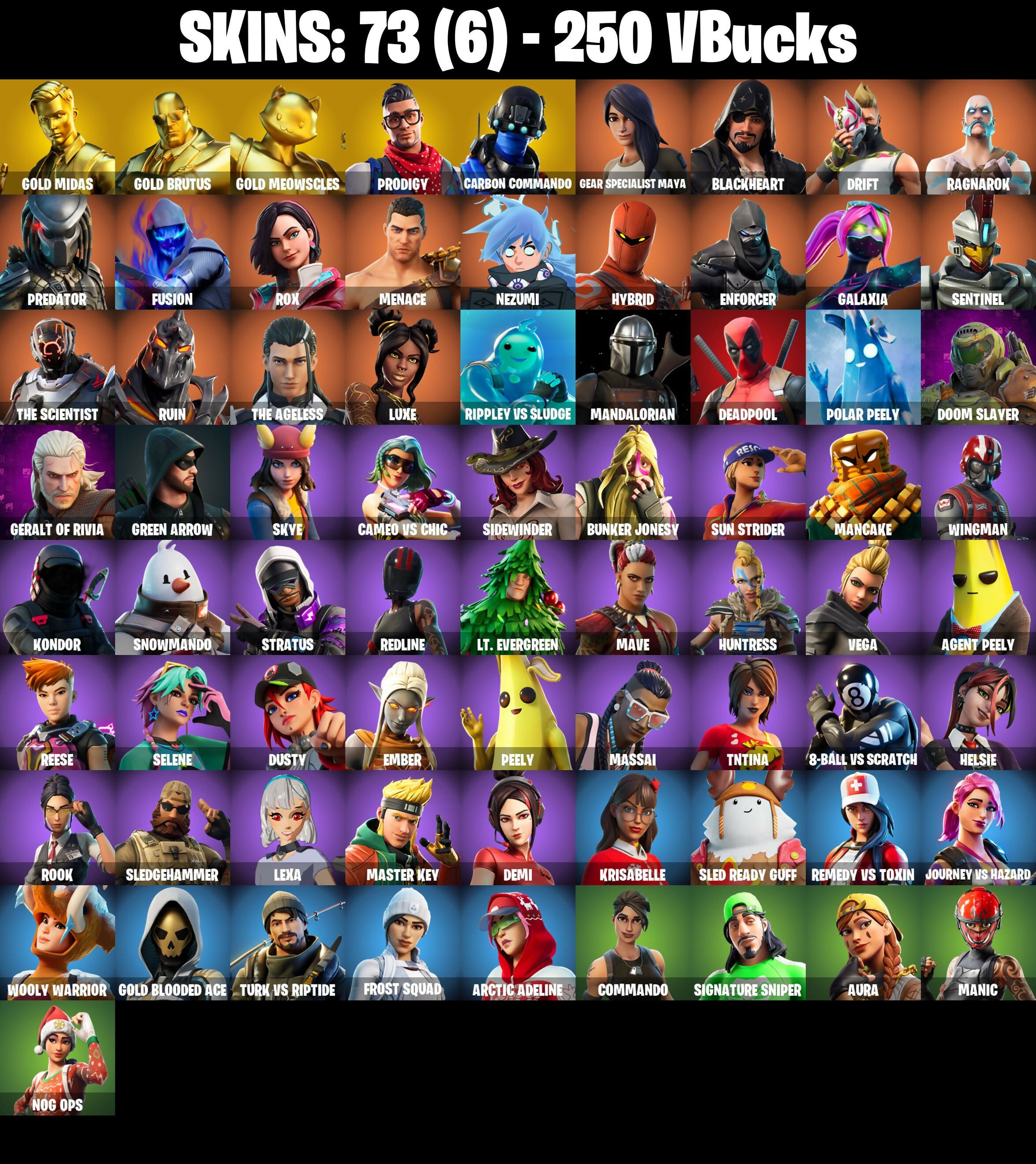 PC/PSN/XBOX |73 skins | Deadpool | Gold Midas | Gold Brutus | Gold Meowscles | Galaxia | Drift | Rage | Ragnarok | Luxe | Peely | Fusion | #B1189