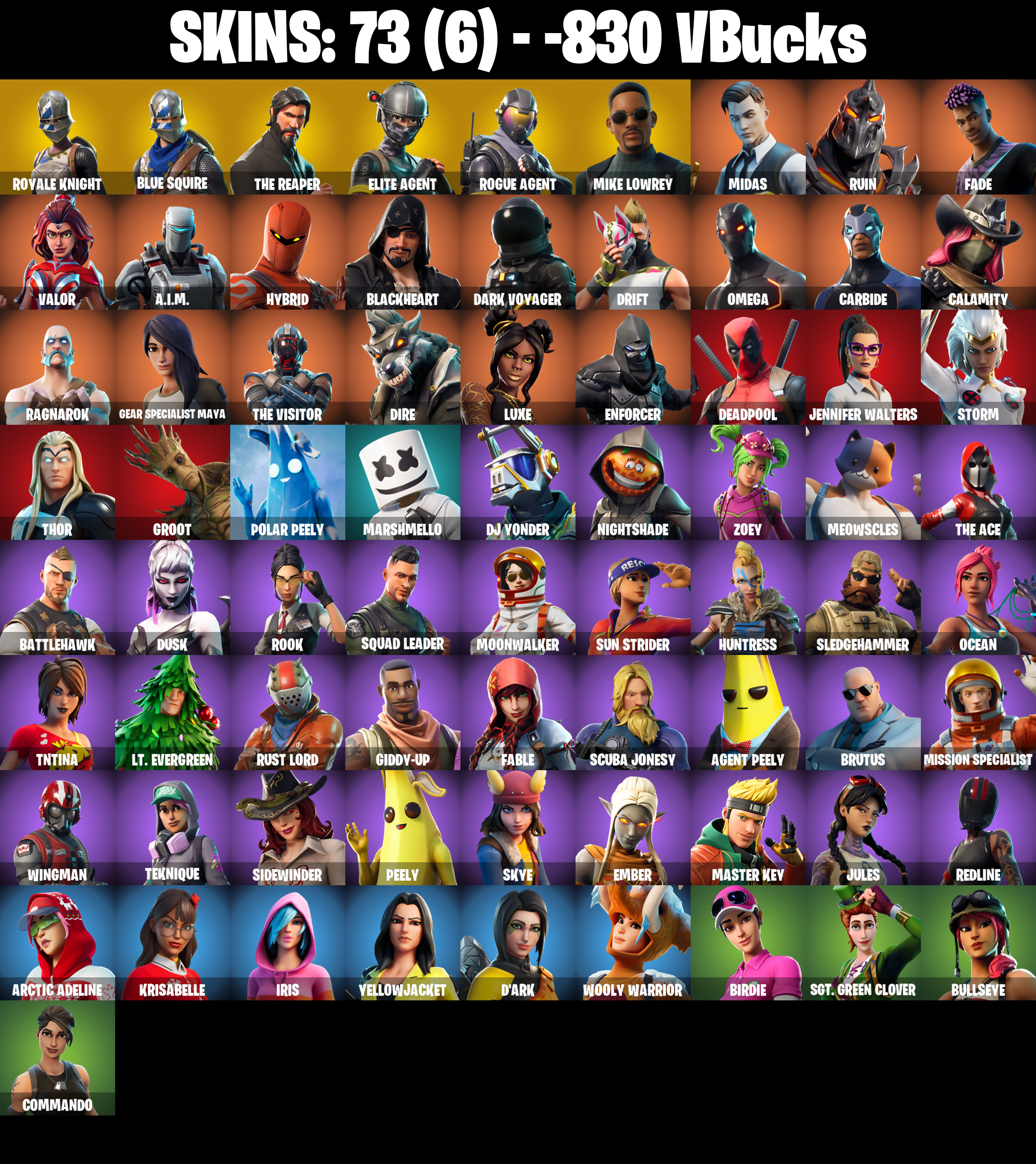 PC/PSN/XBOX |73 skins | Royale Knight | Blue Squire | Deadpool | The Reaper | Elite Agent | Omega | Take The L | Orange Justice | #B994