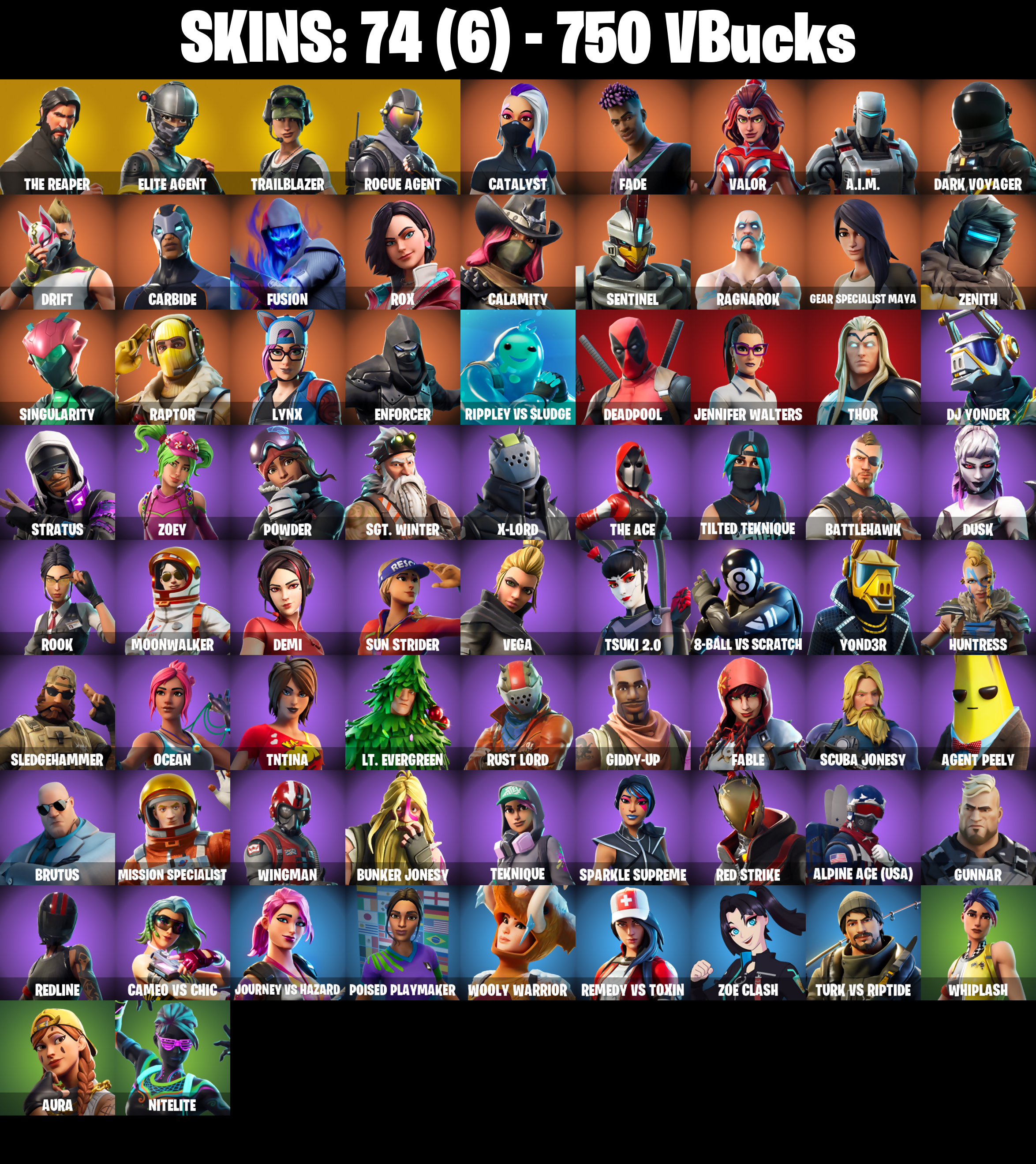 PC/PSN/XBOX |74 skins | Deadpool | The Reaper | Elite Agent | Trailblazer | Freestylin' | Take The L | Orange Justice | Dark Voyager | #B1108