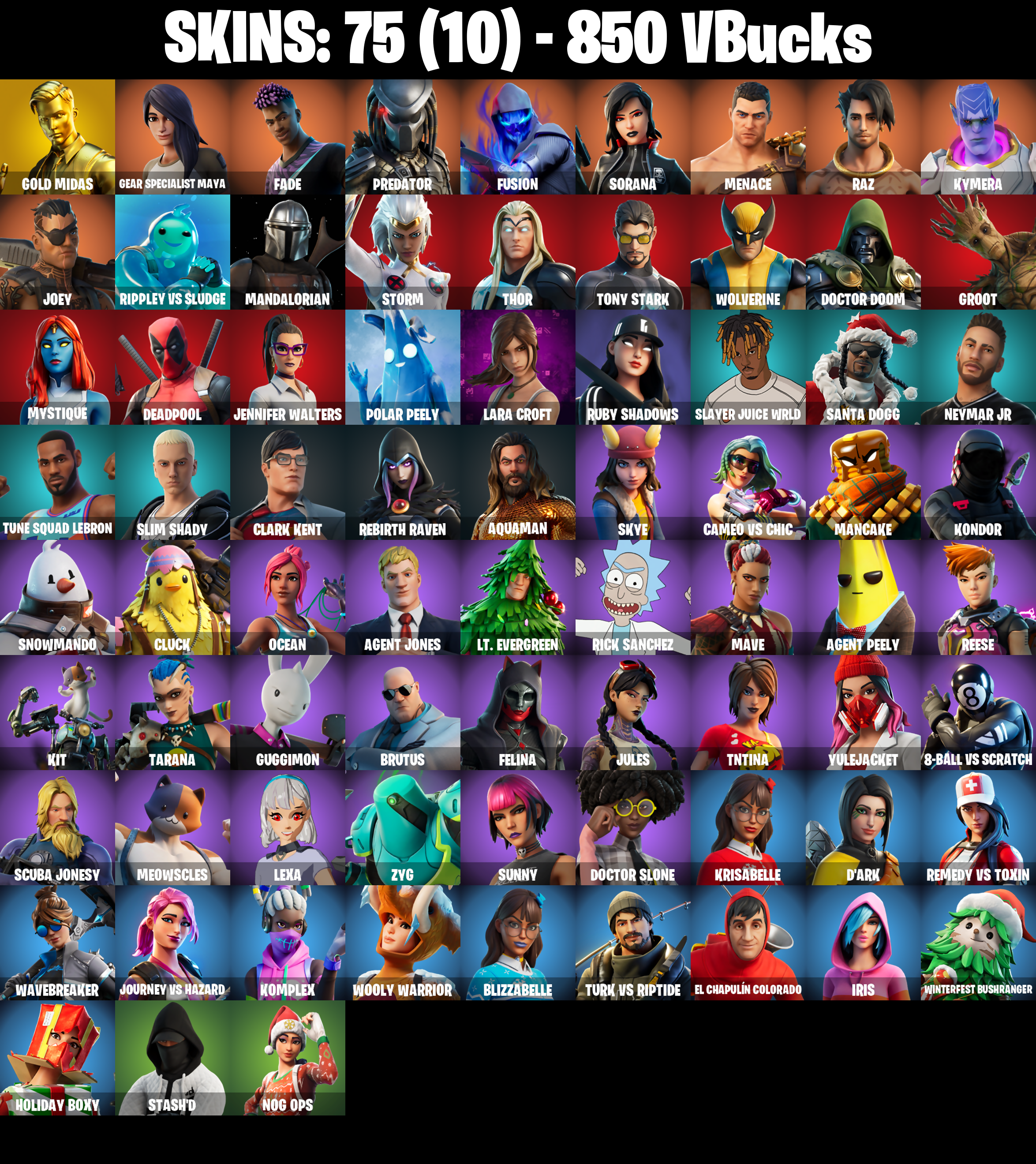 PC/PSN/XBOX |75 skins | Lara Croft | Deadpool | Gold Midas | Jabba Switchway | Fusion | Tony Stark | Menace | Rick Sanchez | Wolverine | #B1181