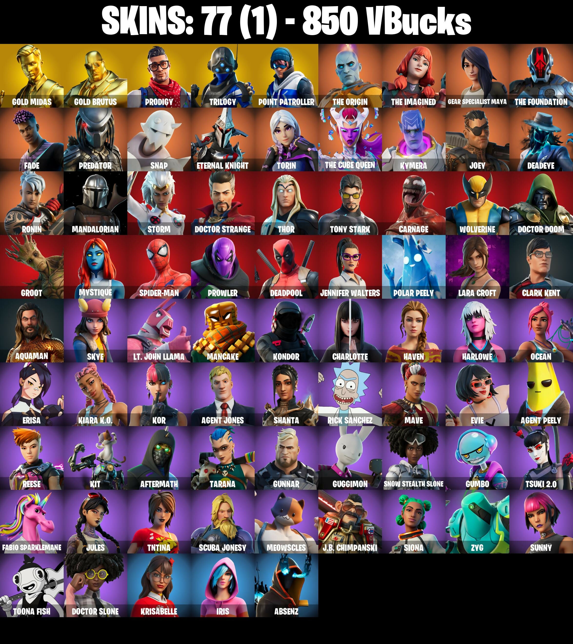 PC/PSN/XBOX |77 skins | Lara Croft | Deadpool | Gold Midas | Gold Brutus | Rage | Spider-Man | Eternal Knight | Tony Stark | Rick Sanchez | #B1172