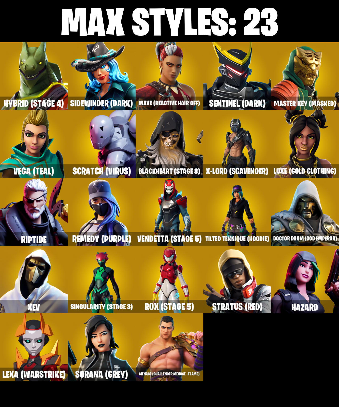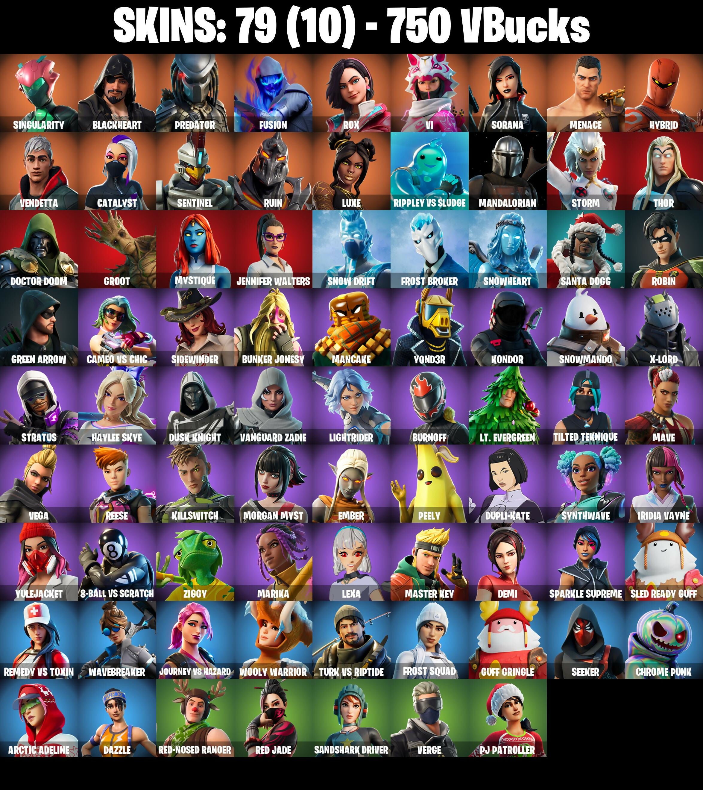 PC/PSN/XBOX |79 skins | Luxe | Peely | Vendetta | Fusion | Menace | Jennifer Walters | Mystique | Doctor Doom | Sing Along | Wavebreaker | #B1162