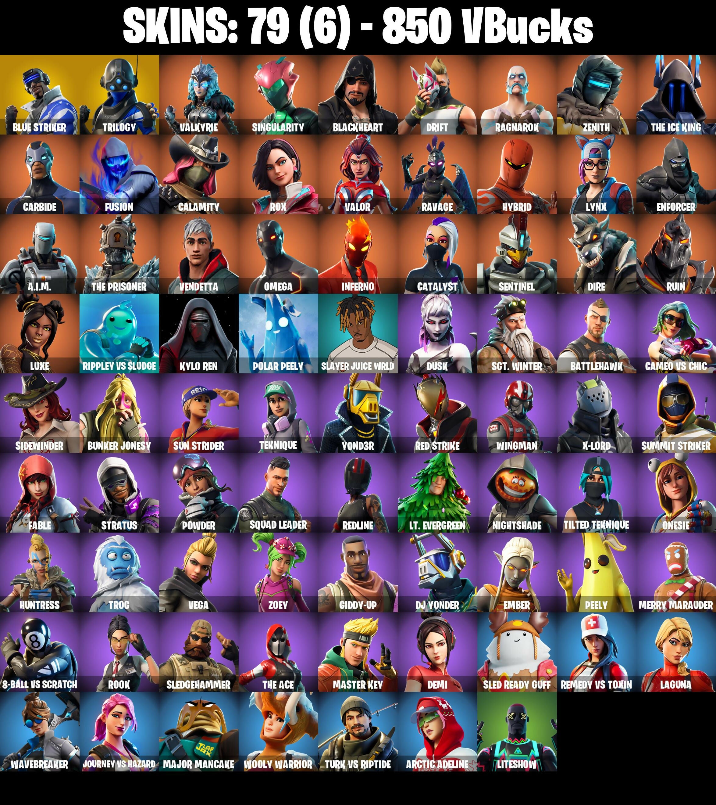 PC/PSN/XBOX |79 skins | Omega | Orange Justice | Drift | Carbide | Fresh | Ragnarok | Dire | The Ice King | Luxe | Peely | Vendetta | Fusion | #B1163