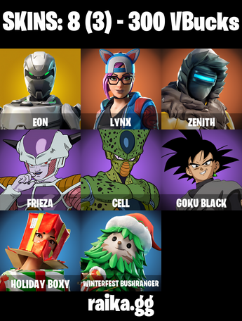 PC/PSN/XBOX | 8 skins | Eon, Rust Bucket, Resonator, Rambunctious, Hot Marat, Aurora, Lynx, Zenith, Frieza, Cell | #B240
