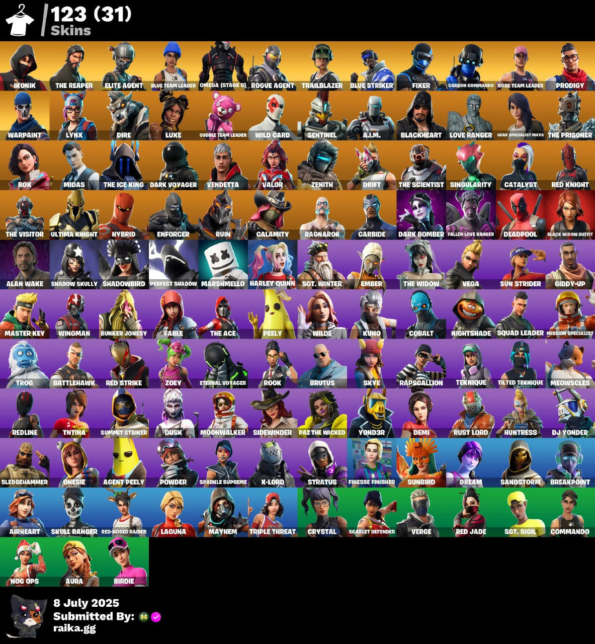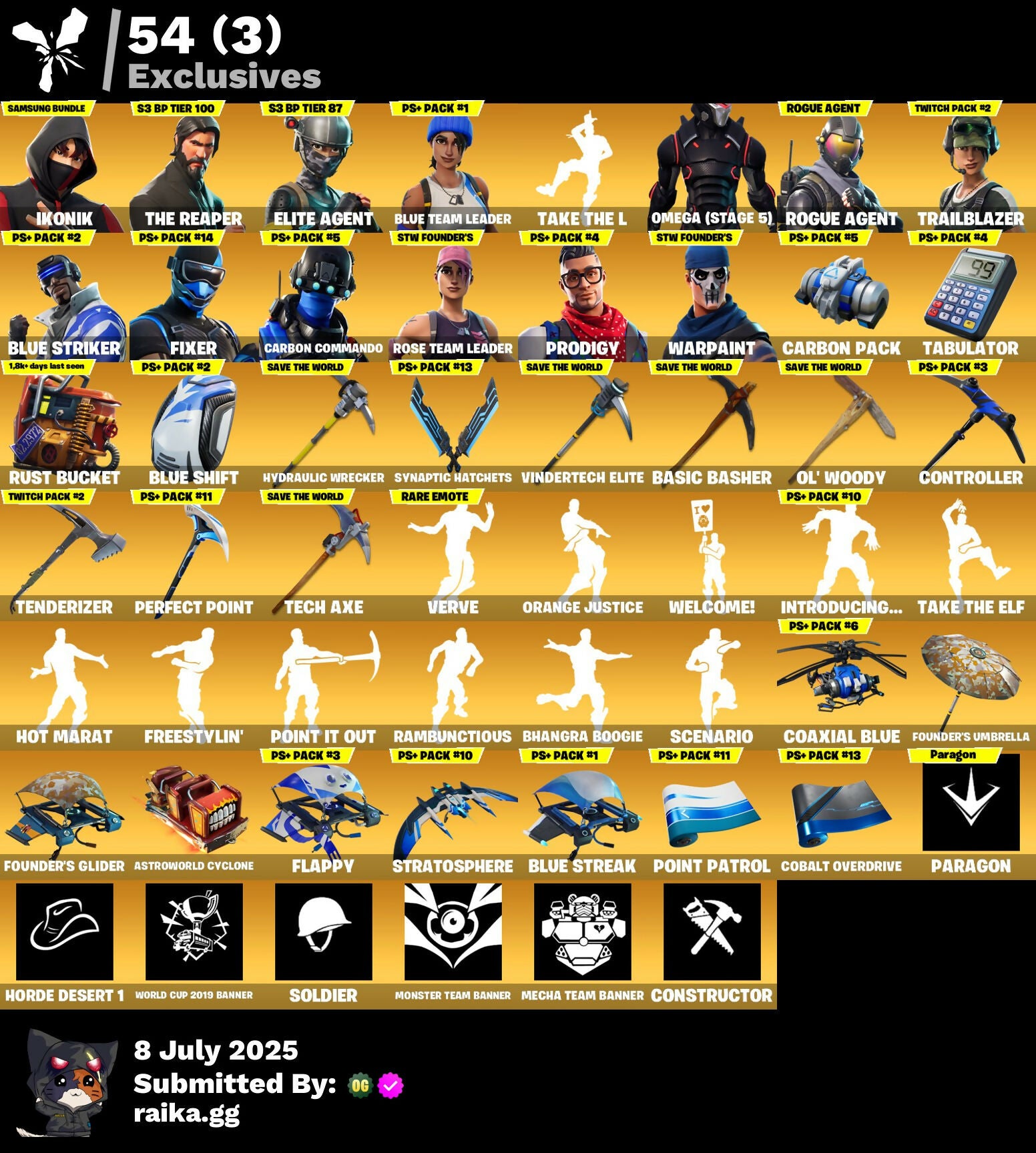 [PC/PSN/XBOX/NITTENDO] 123 skins | OG STW | IKONIK | The Reaper | Elite Agent | Blue Team Leader | Take The L | Omega (stage 5) | Rogue Agent | Trailblazer | 265 VB