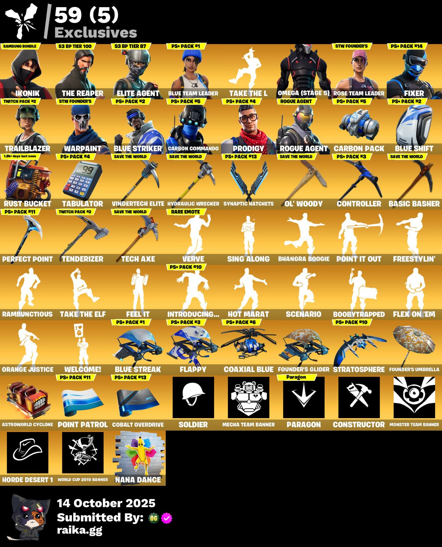 [PC/PSN/XBOX/NITTENDO] 180 skins | OG STW | IKONIK | The Reaper | Elite Agent | Blue Team Leader | Omega (stage 5) | Fixer | Trailblazer | Blue Striker | Carbon Commando | 600 VB