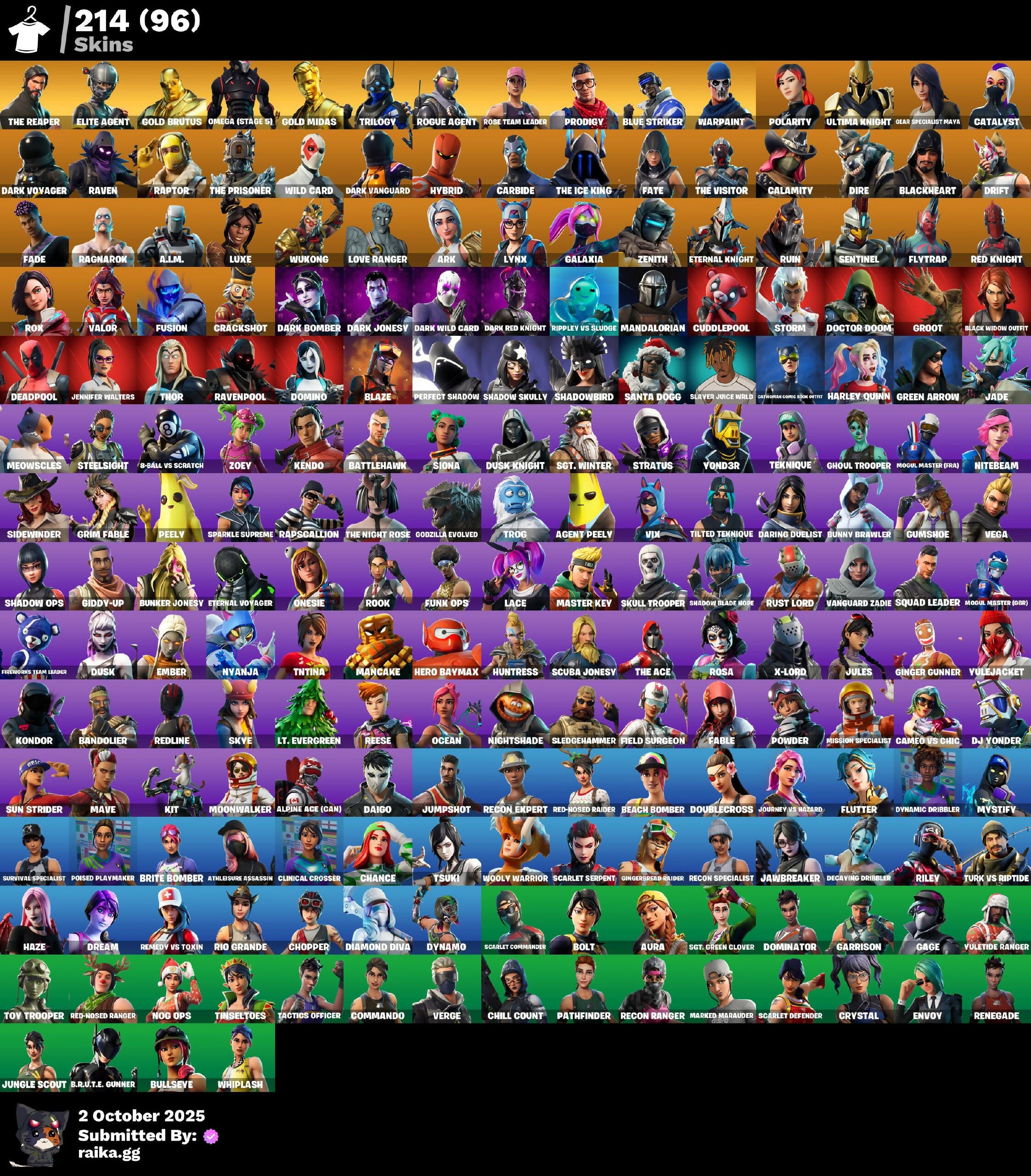 [PC/XBOX] 214 skins | OG STW | The Reaper | Elite Agent | Gold Brutus | Omega (stage 5) | Gold Midas | Trilogy | Rogue Agent | Prodigy | Blue Striker | 250 VB