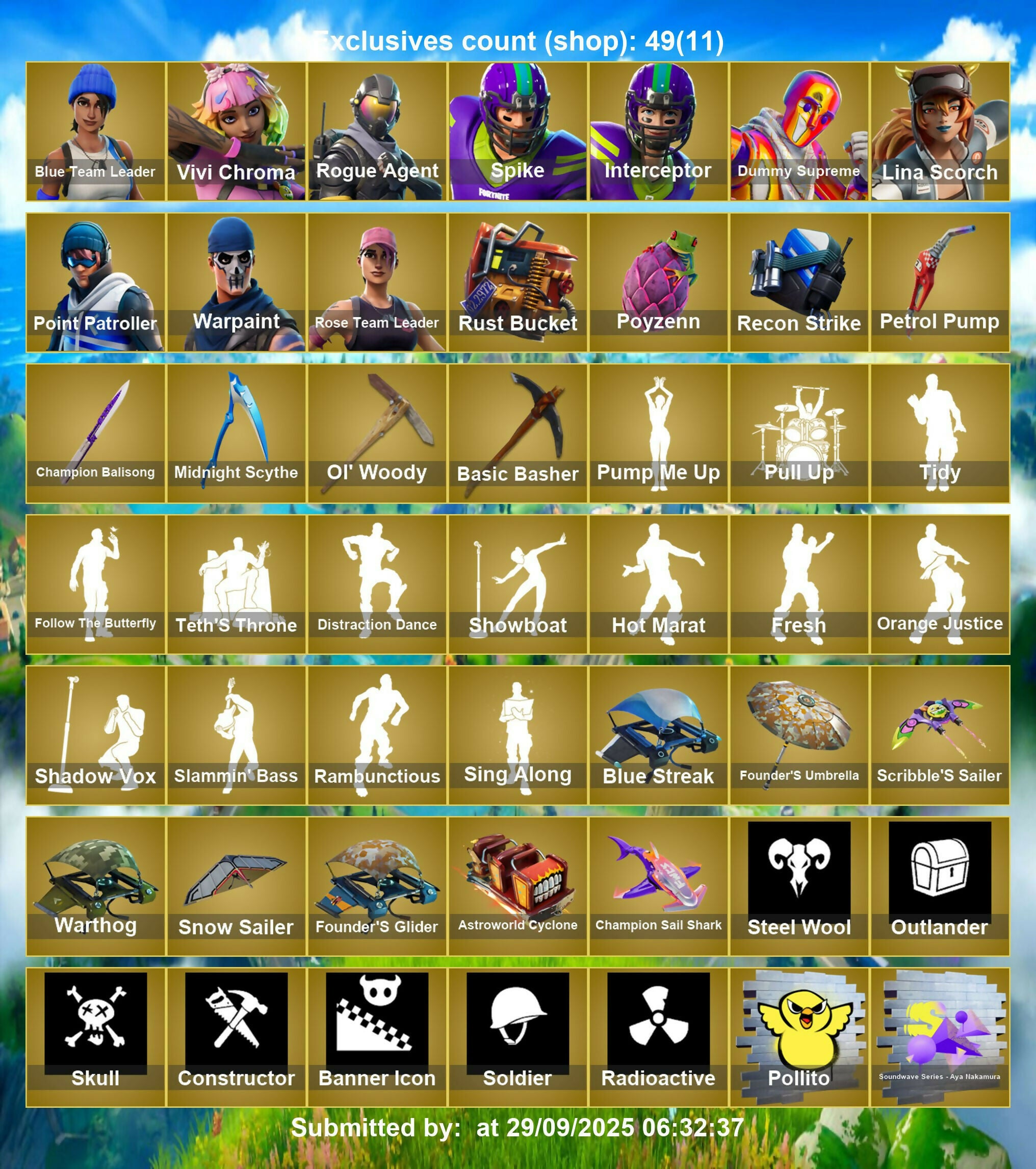 [PC/XBOX] 323 skins | OG STW | Blue Team Leader | Vivi Chroma | Rogue Agent | Spike | Interceptor | Dummy Supreme | Lina Scorch | Point Patroller | Valor | 2490 VB