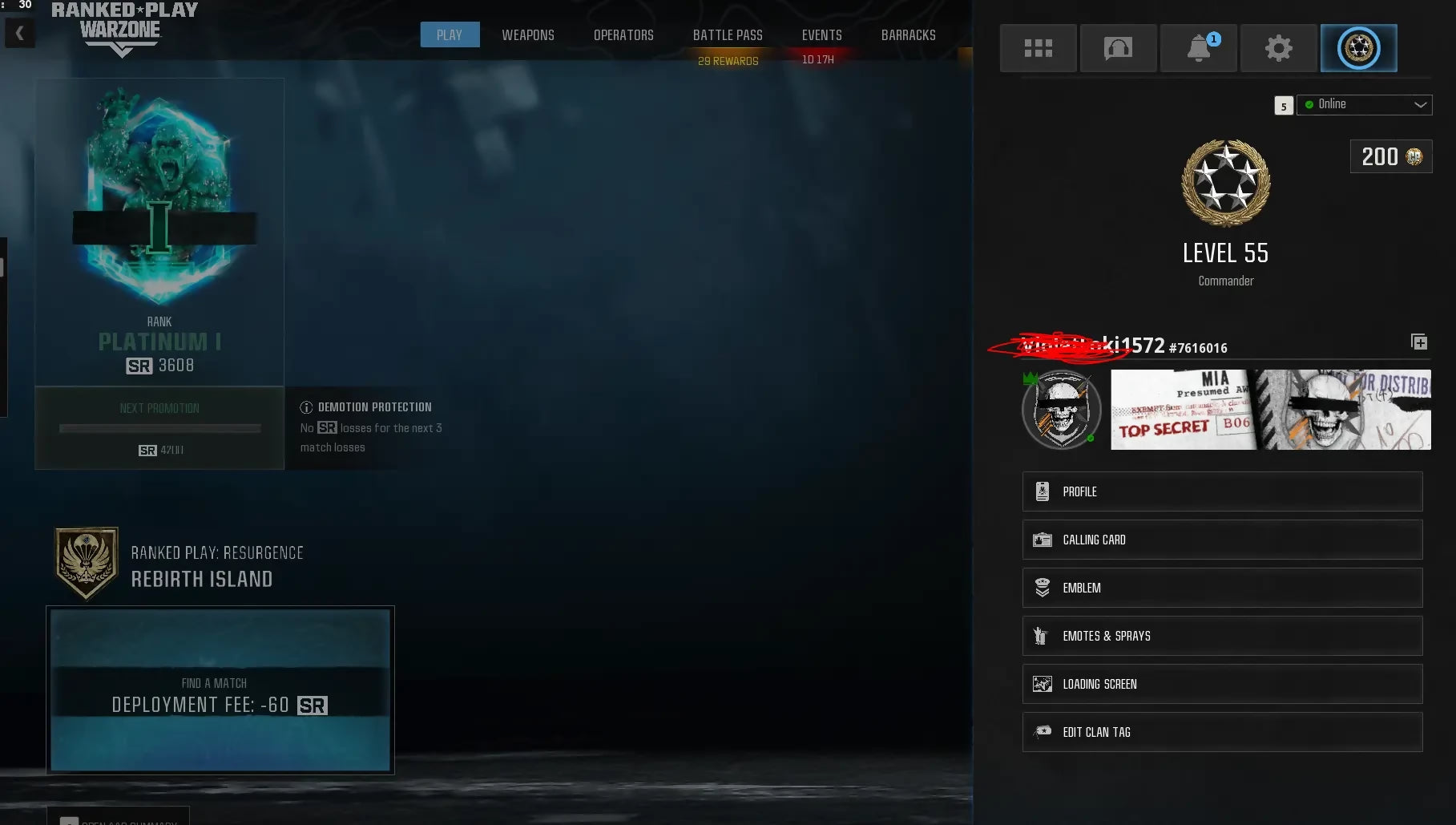 platinum rank warzone 4 RESURGENCE REBIRTH ISLAND SR (3600+) + Linkable platform to STEAM / BNET / PSN / XBOX