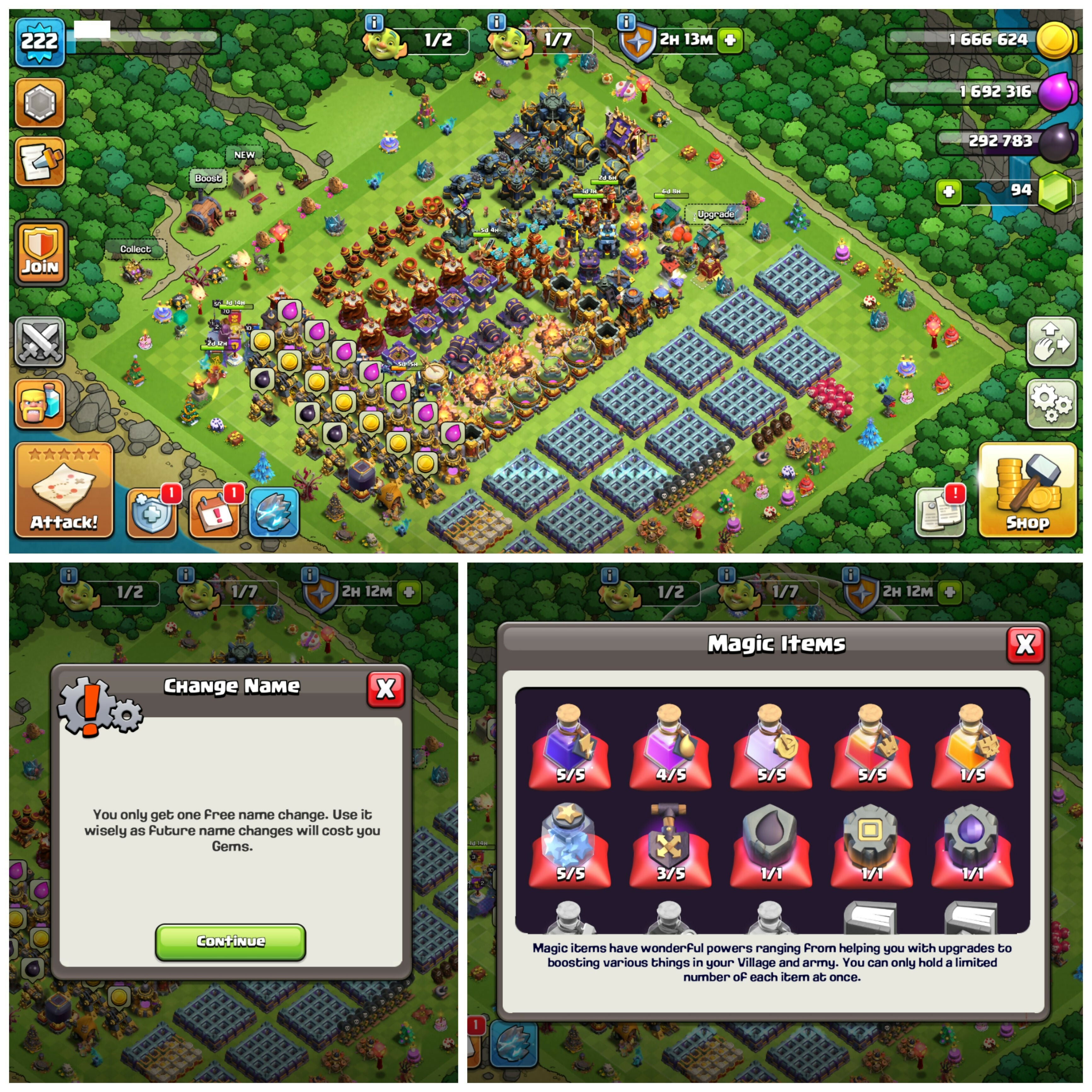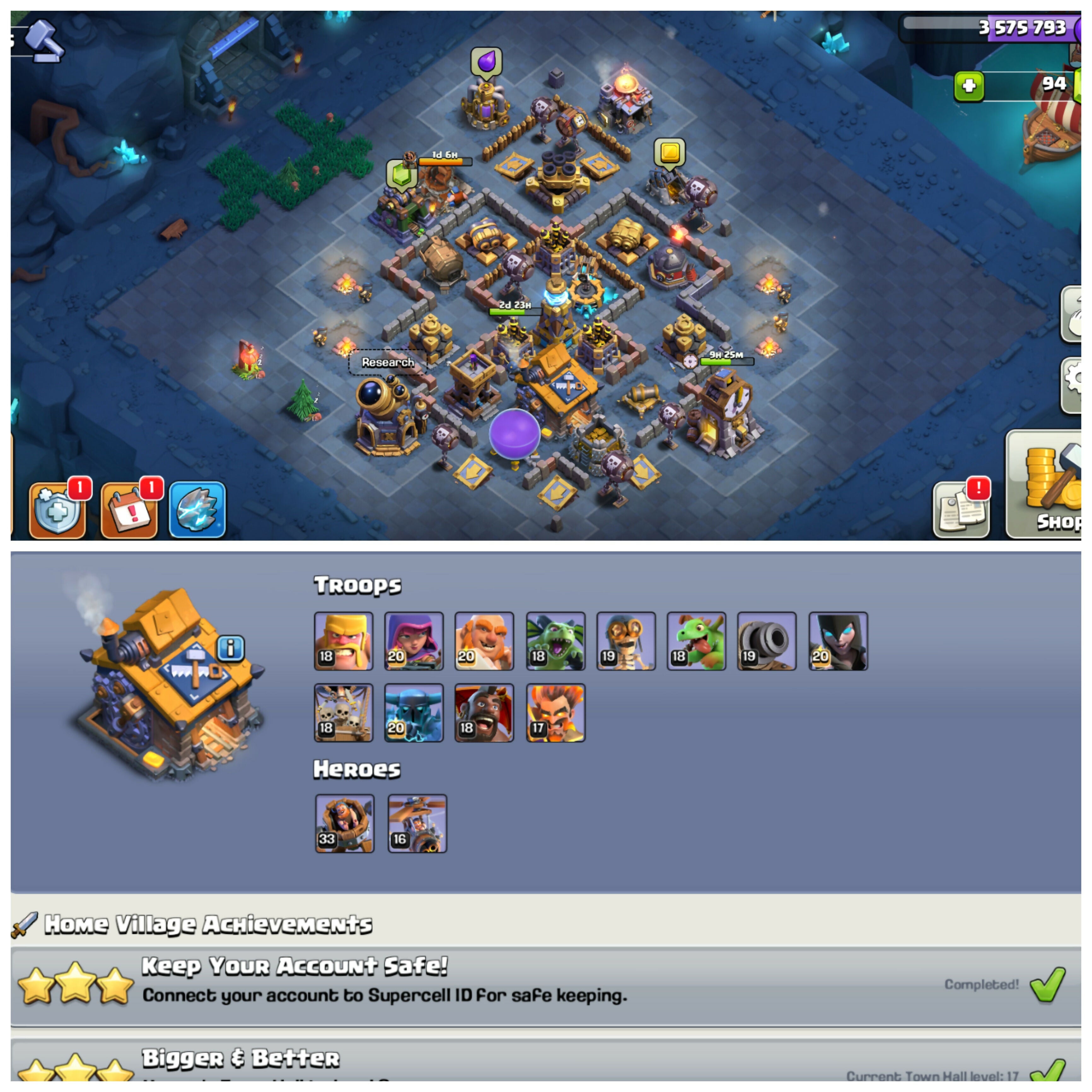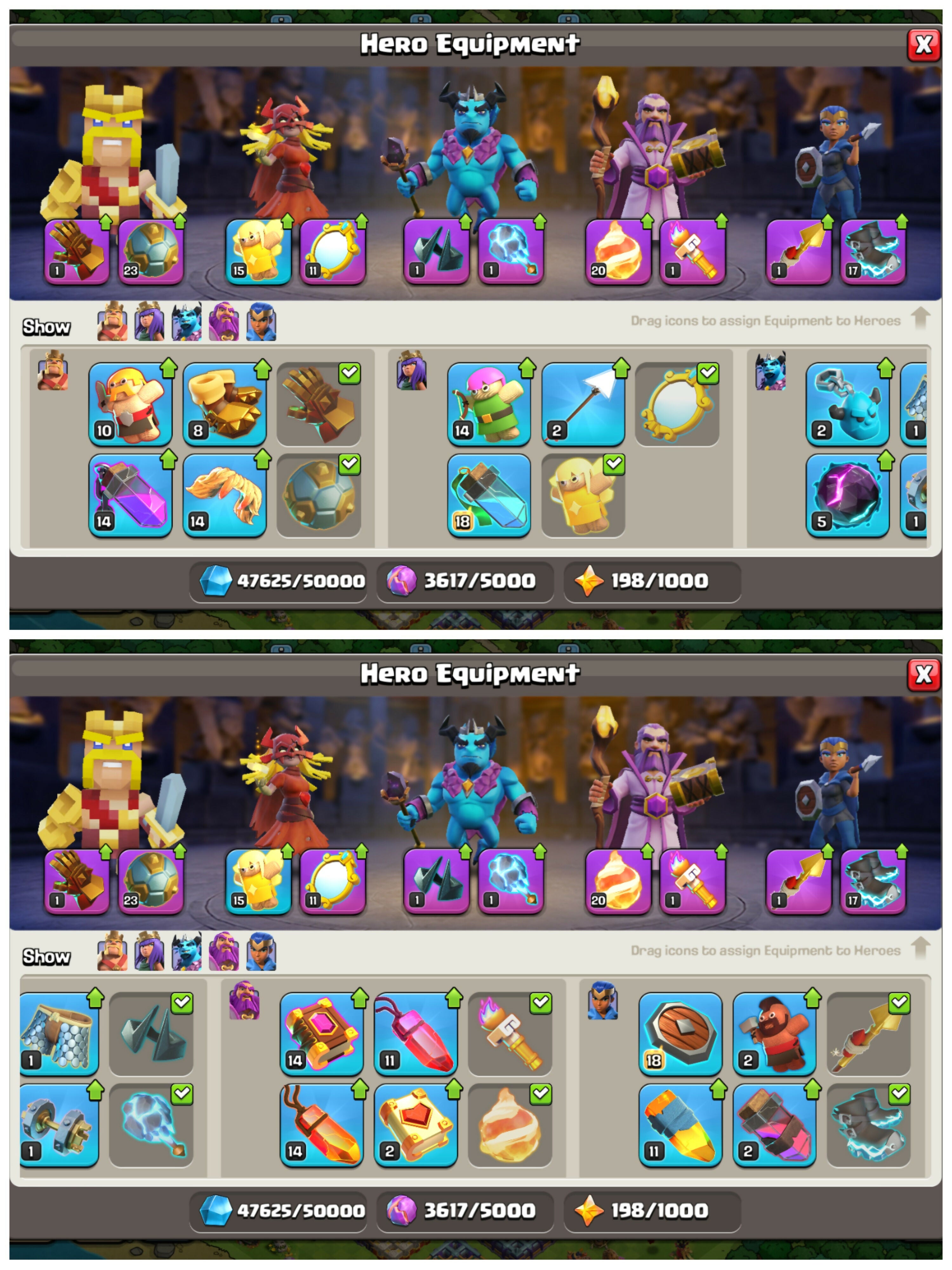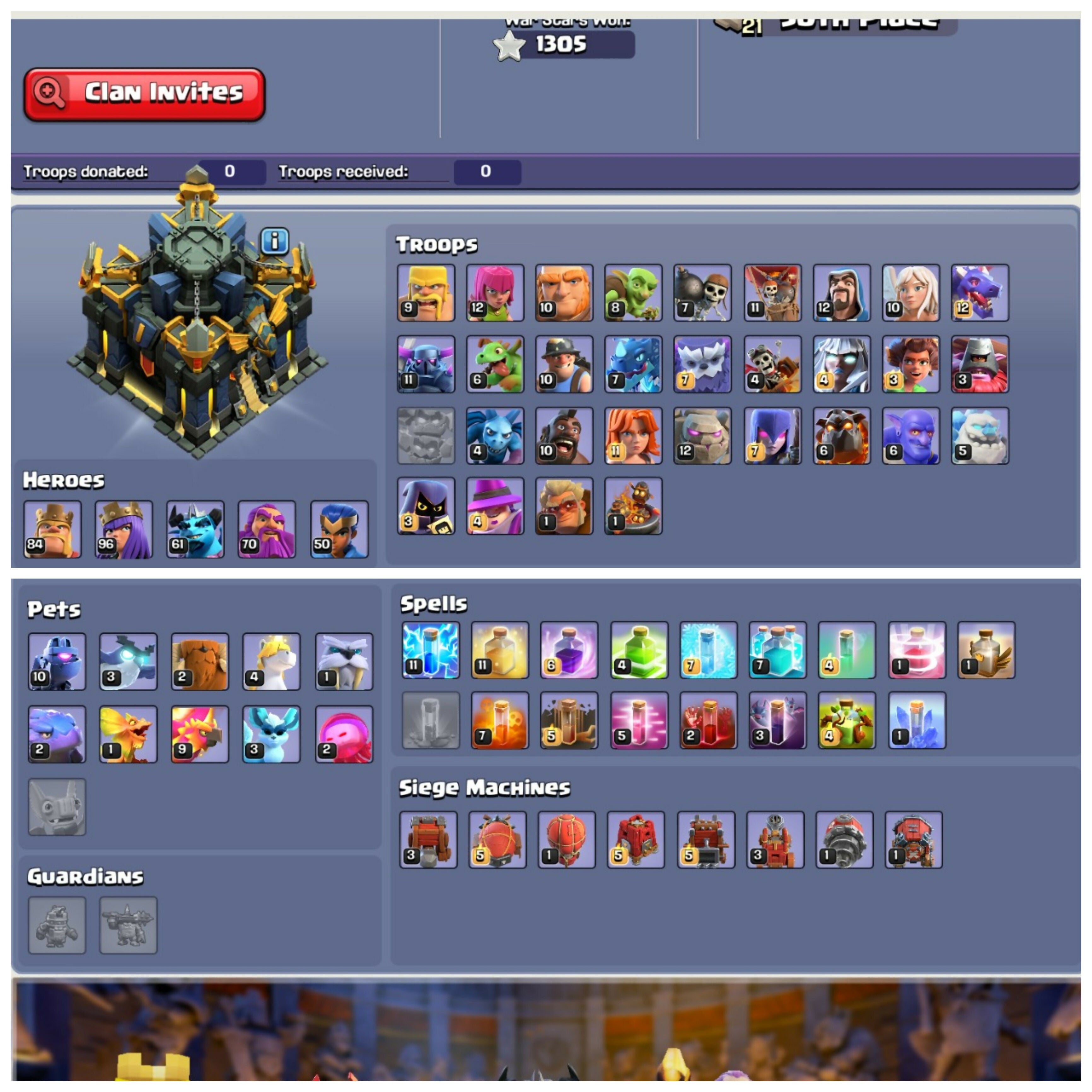 Rare: 2015 Clash Tree & CWL Queen Skin | TH17 Legends PlayHouse | Heroes: BK84 : AQ96 : MP61 : GW70 : RC50 | 9 Epic Equipments | Android/iOS