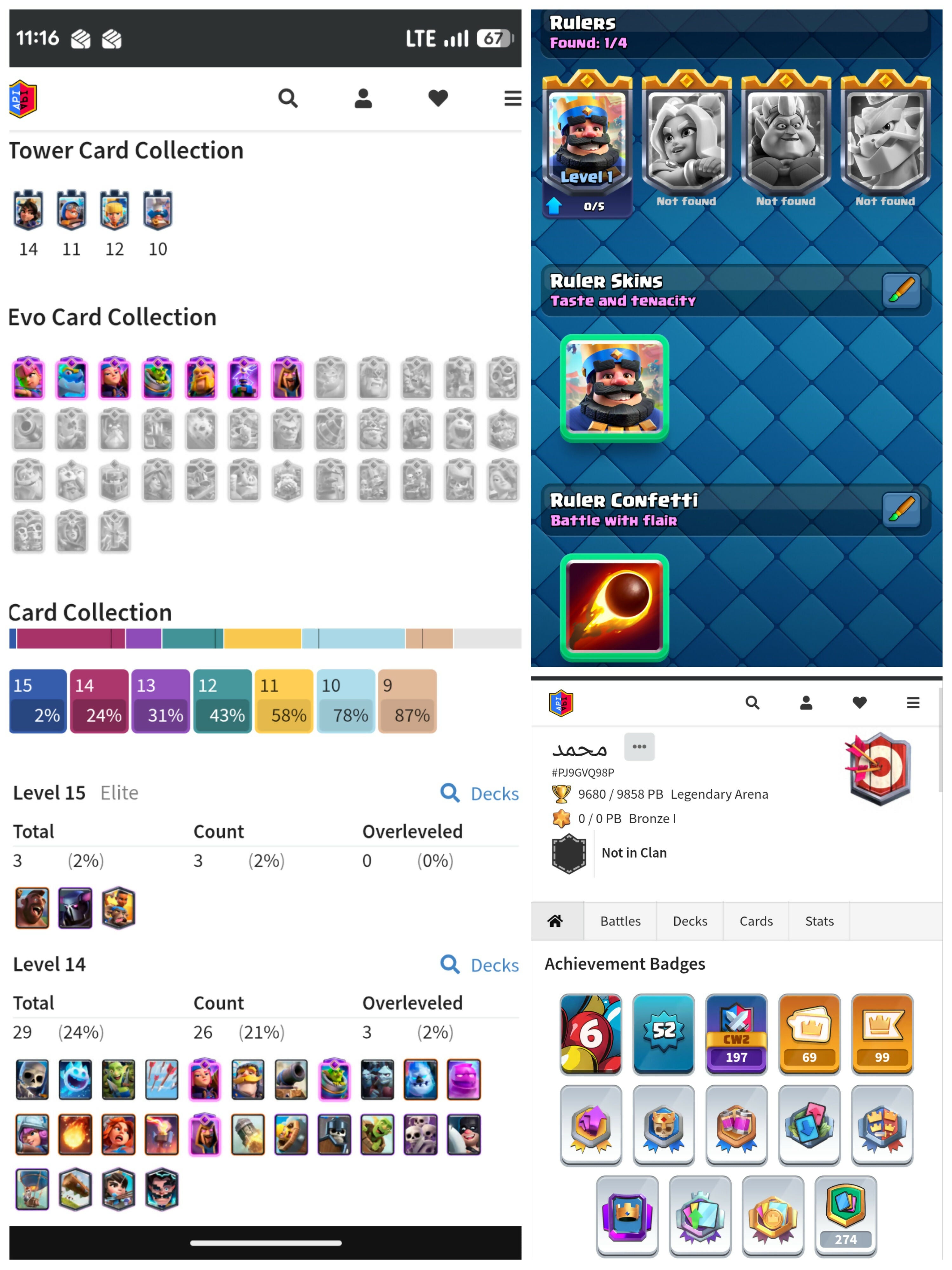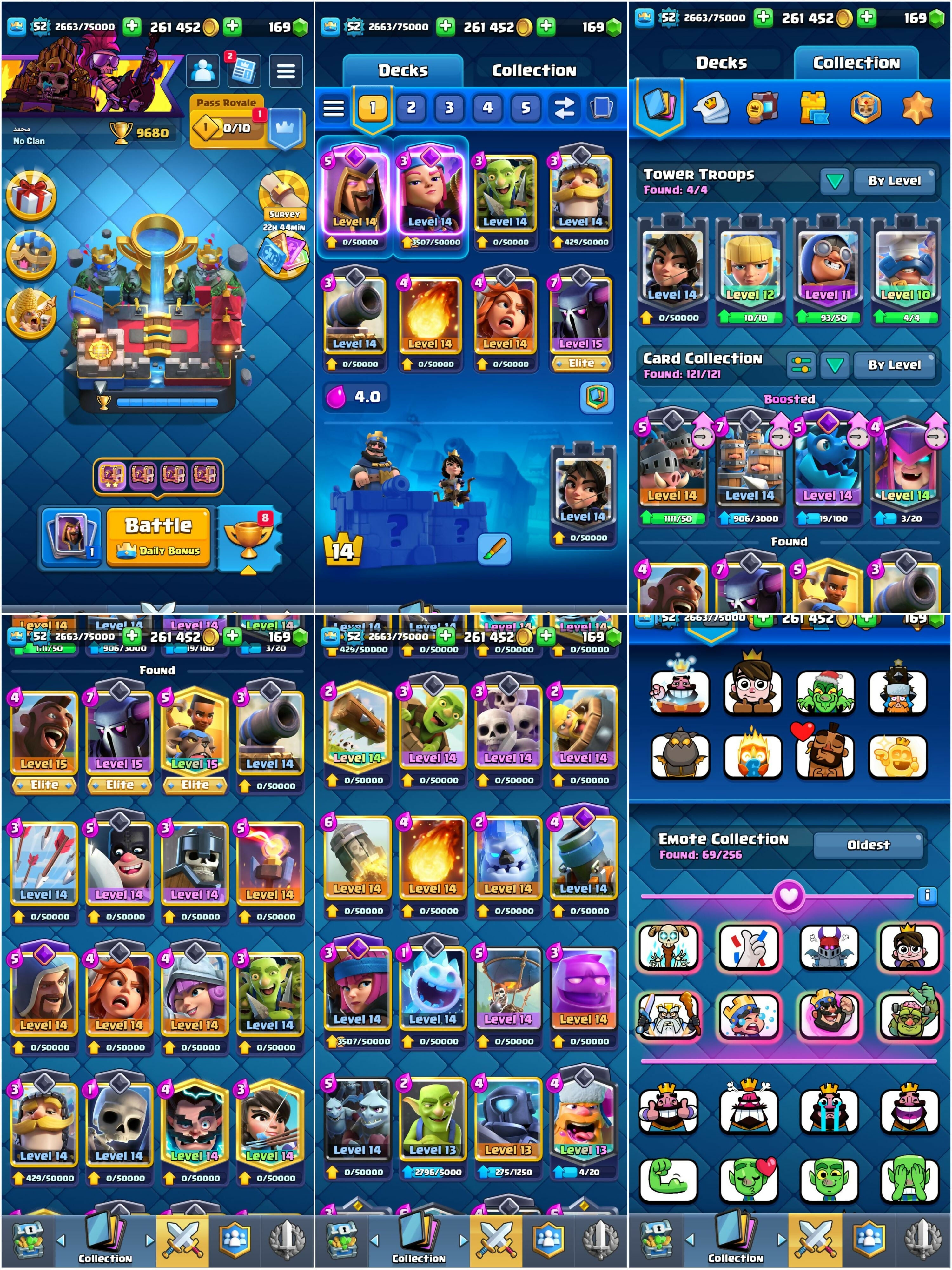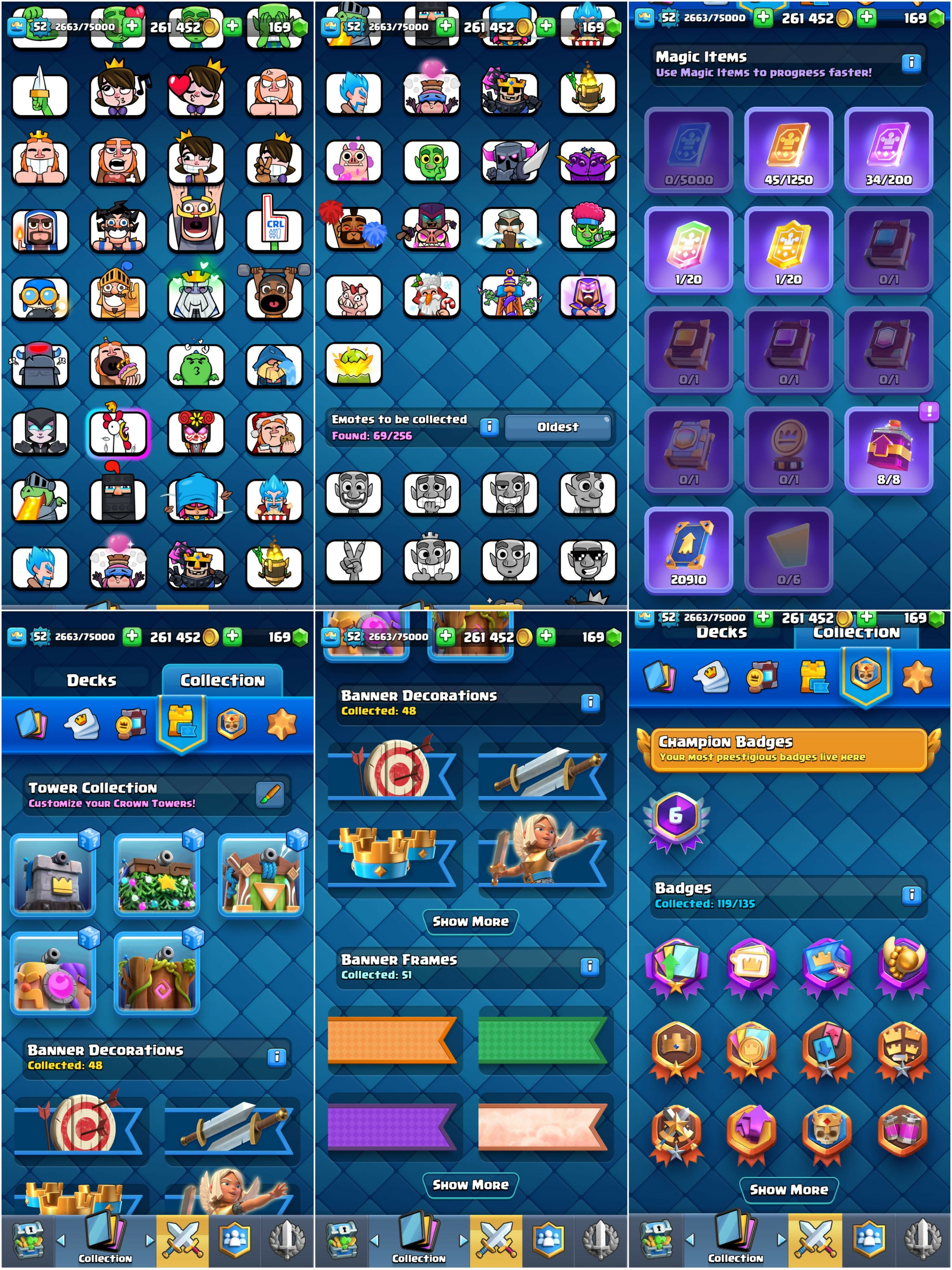 Rare 6 Years Badge | Level 52 + KT 14 | 9600 Trophies | 29 Max Cards : 3 Elites : 7 Evos | 69 Emotes & 5 Tower Skins | Android/iOS