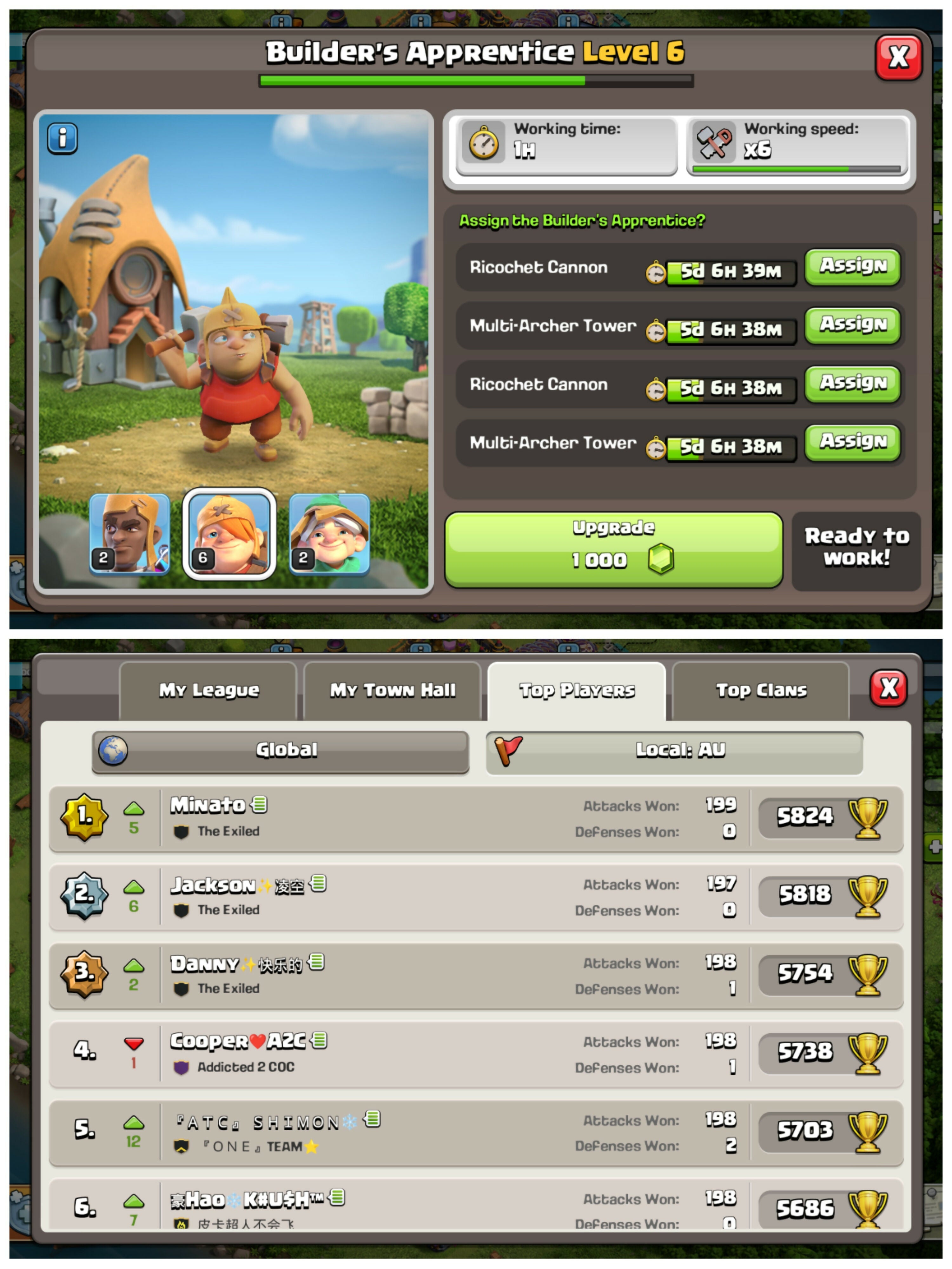 Rare: Australia Local | TH17 Elite Vault | XP 224 : 19 Heroes Skins | Level 6 Apprentice High , Full Max BuilderHall | 250 CWL Medals | Android/iOS
